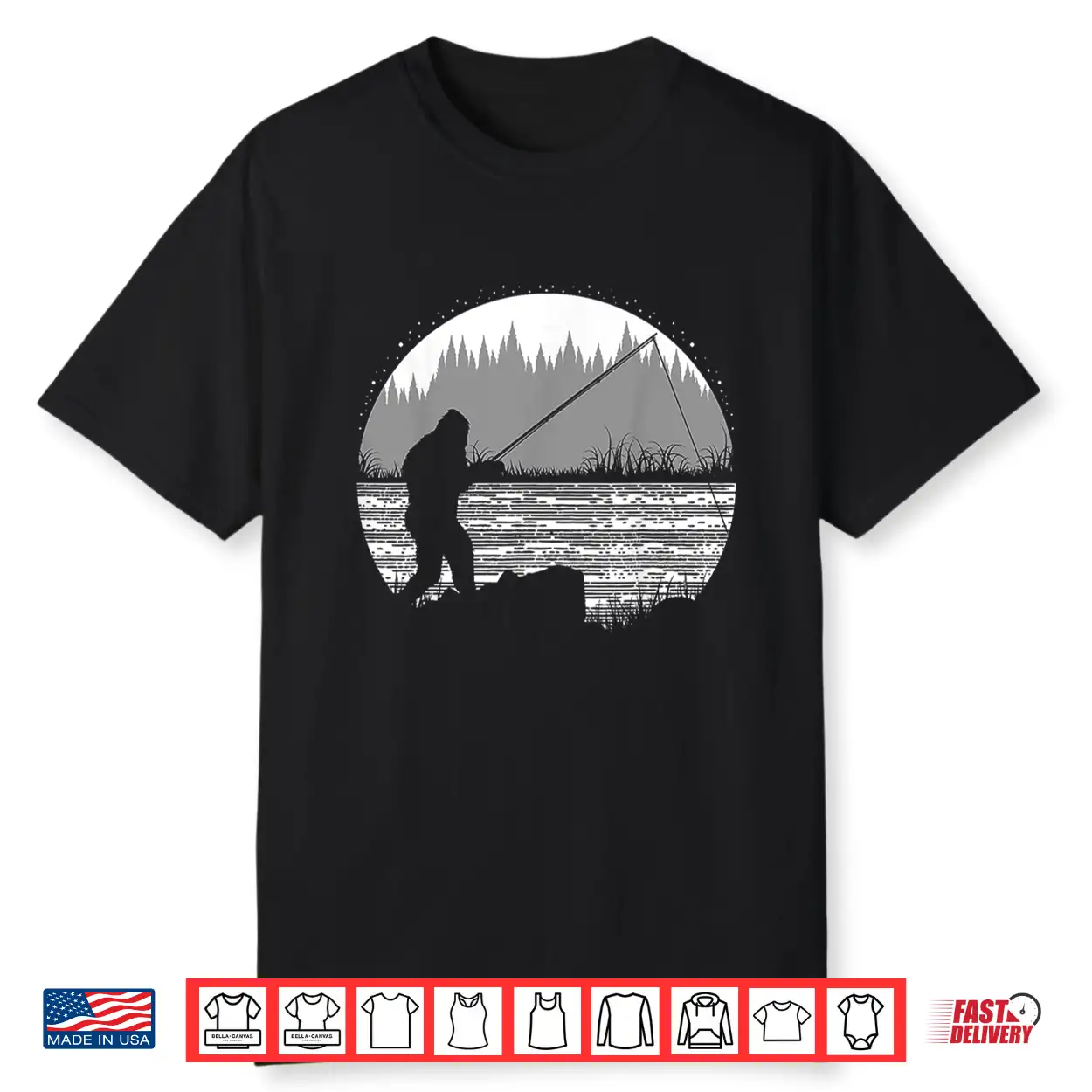 Funny Bigfoot Fishing Cool Sasquatch Fly Fishing Fisherman Shirt