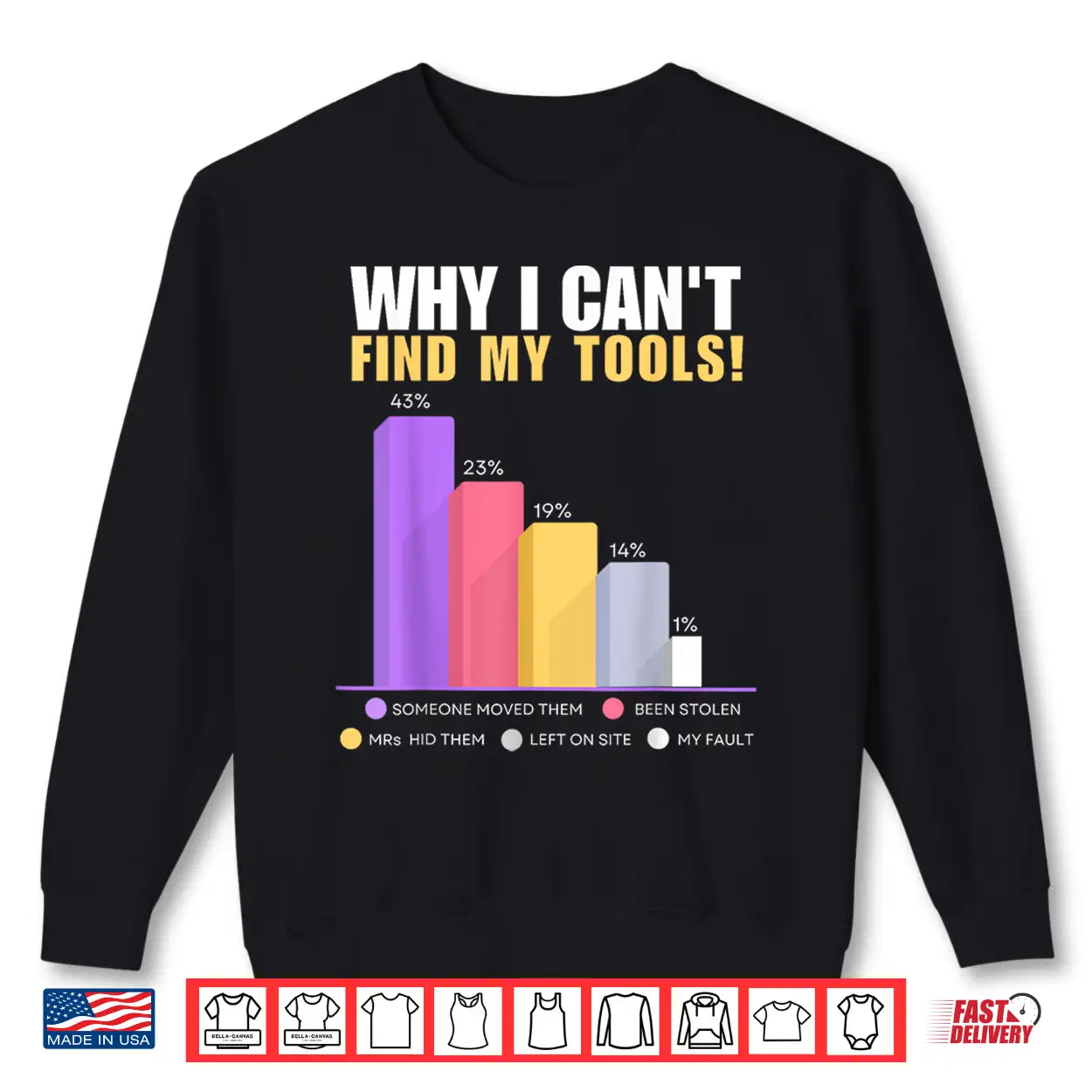 Funny Builder Handyman Gift Why I Cant Find My Tools Shirt