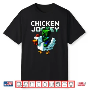 Funny Chicken Jockey Zombie Pixel Art Gamer Shirt