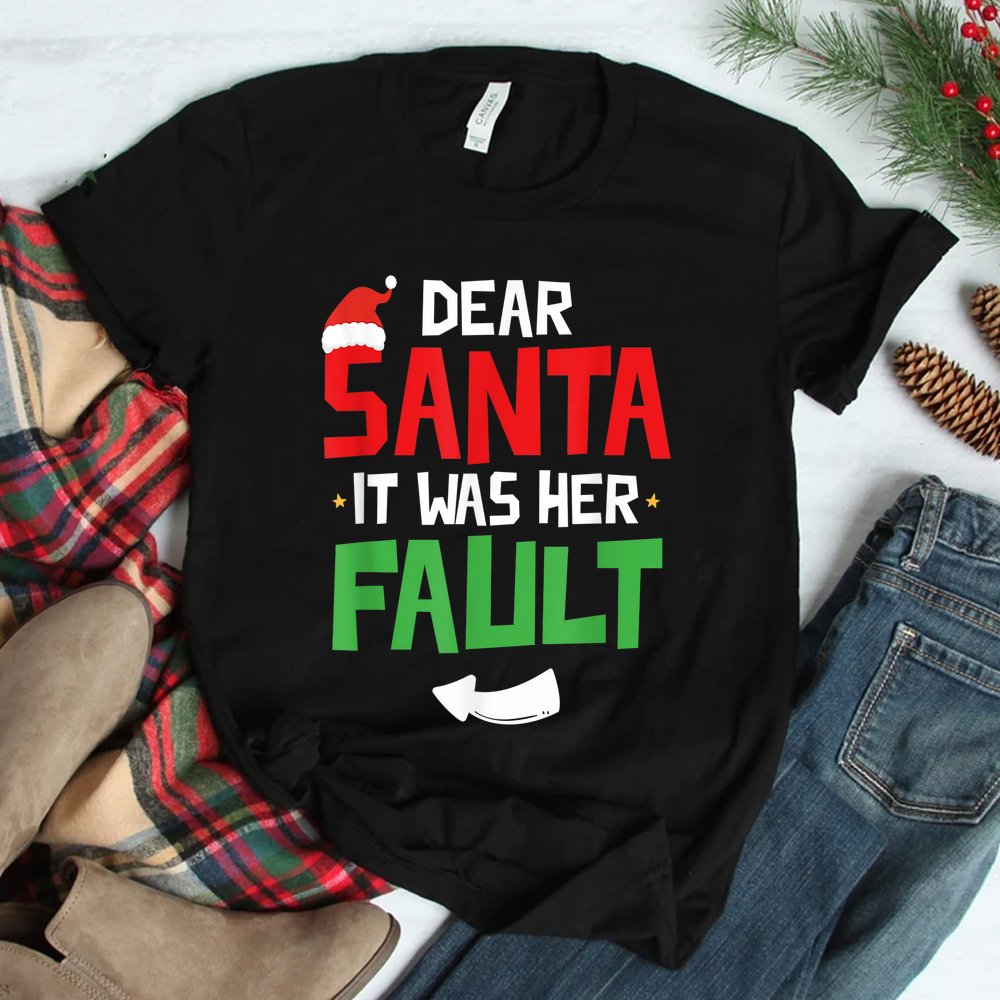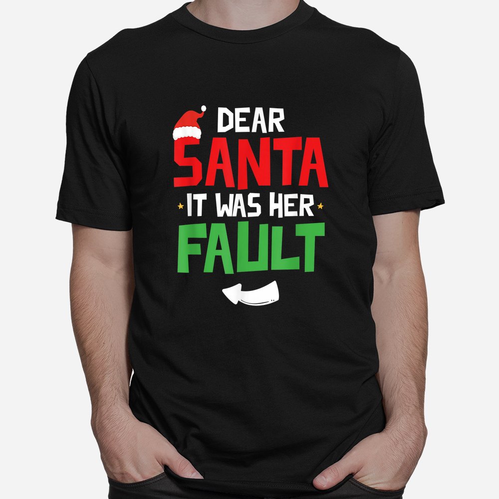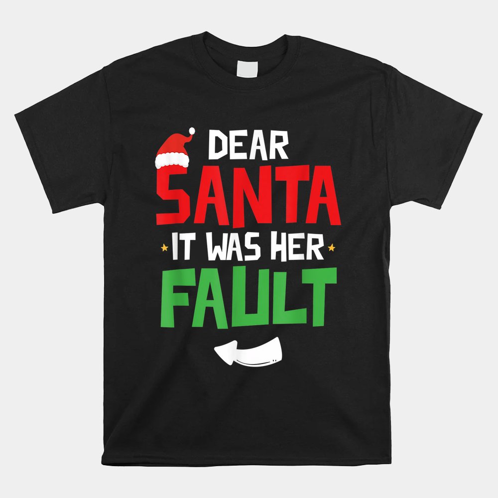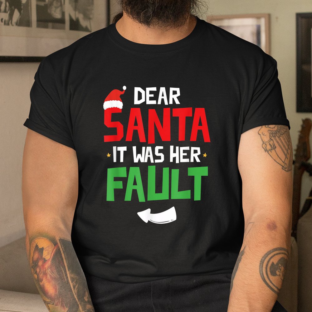 Funny Christmas Couples Shirt Dear Santa It Was Her Fault Shirt, hoodie, sweatshirt, long sleeve and ladies T-shirt
