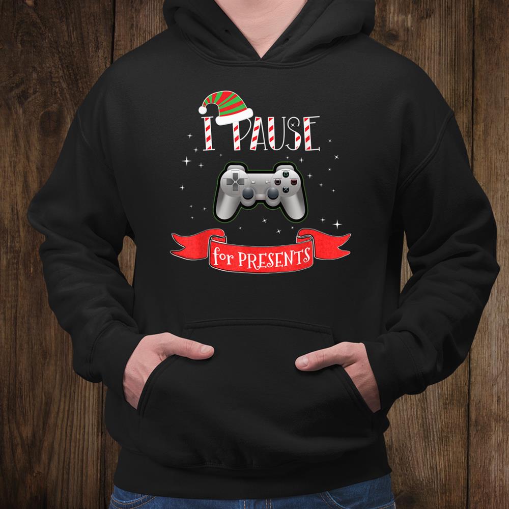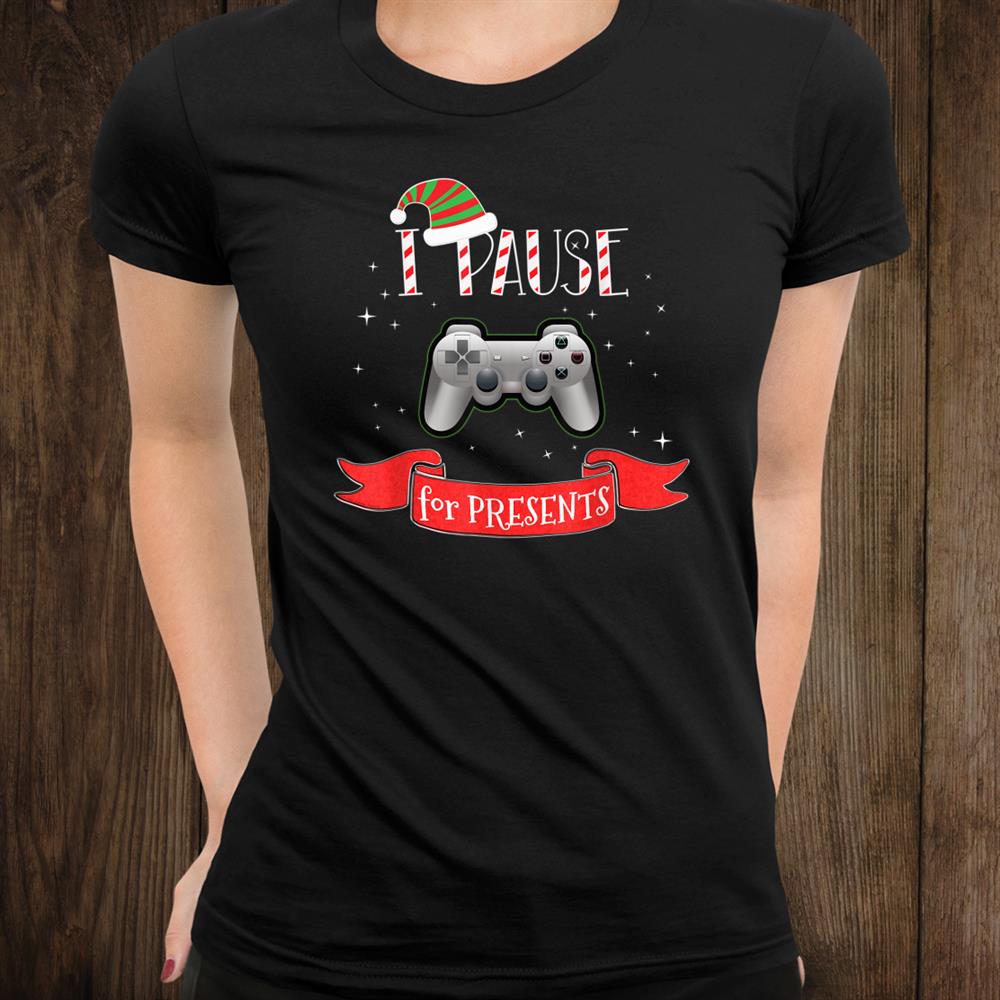 Funny Christmas Gamer I Pause For Presents Gaming Shirt, hoodie, sweatshirt, long sleeve and ladies T-shirt
