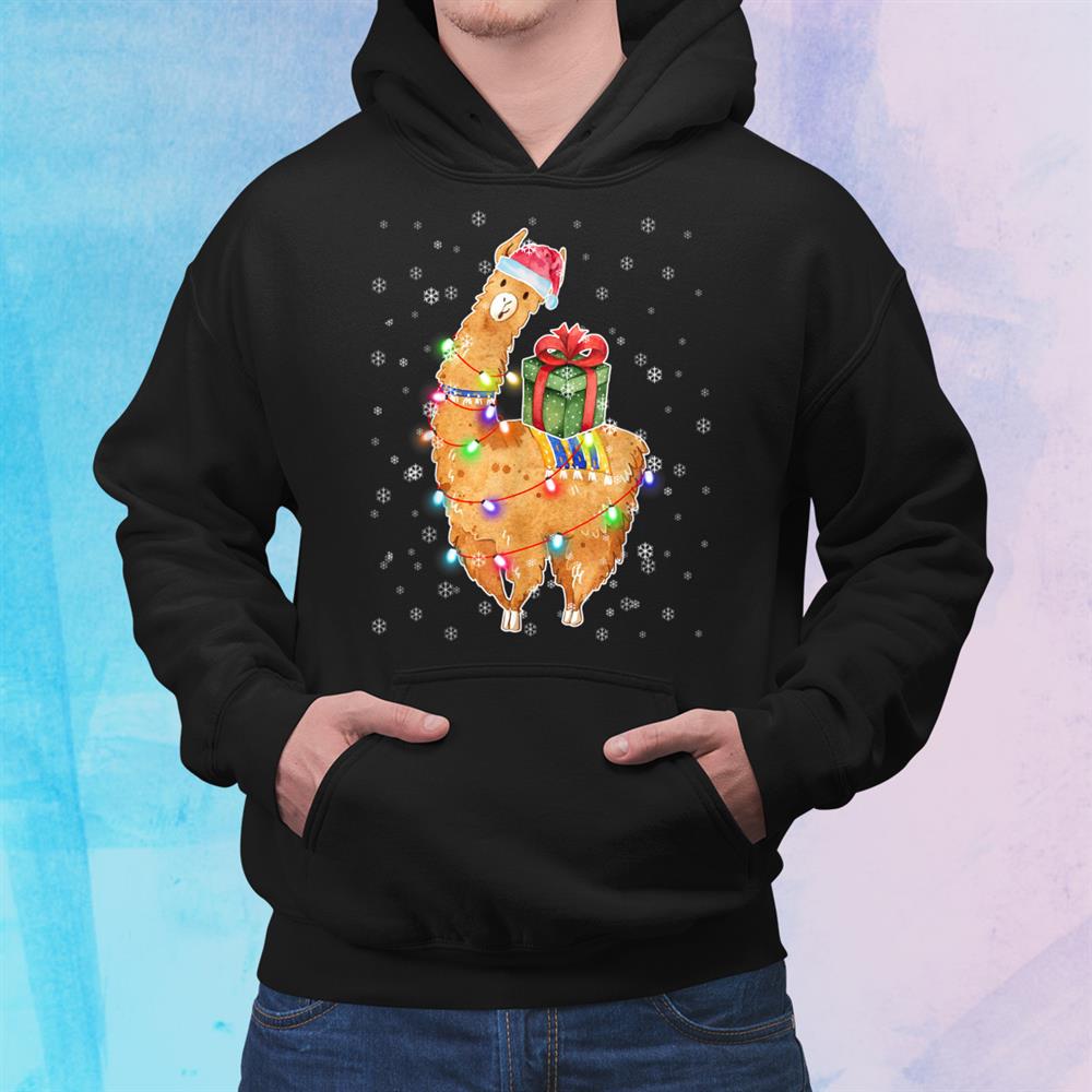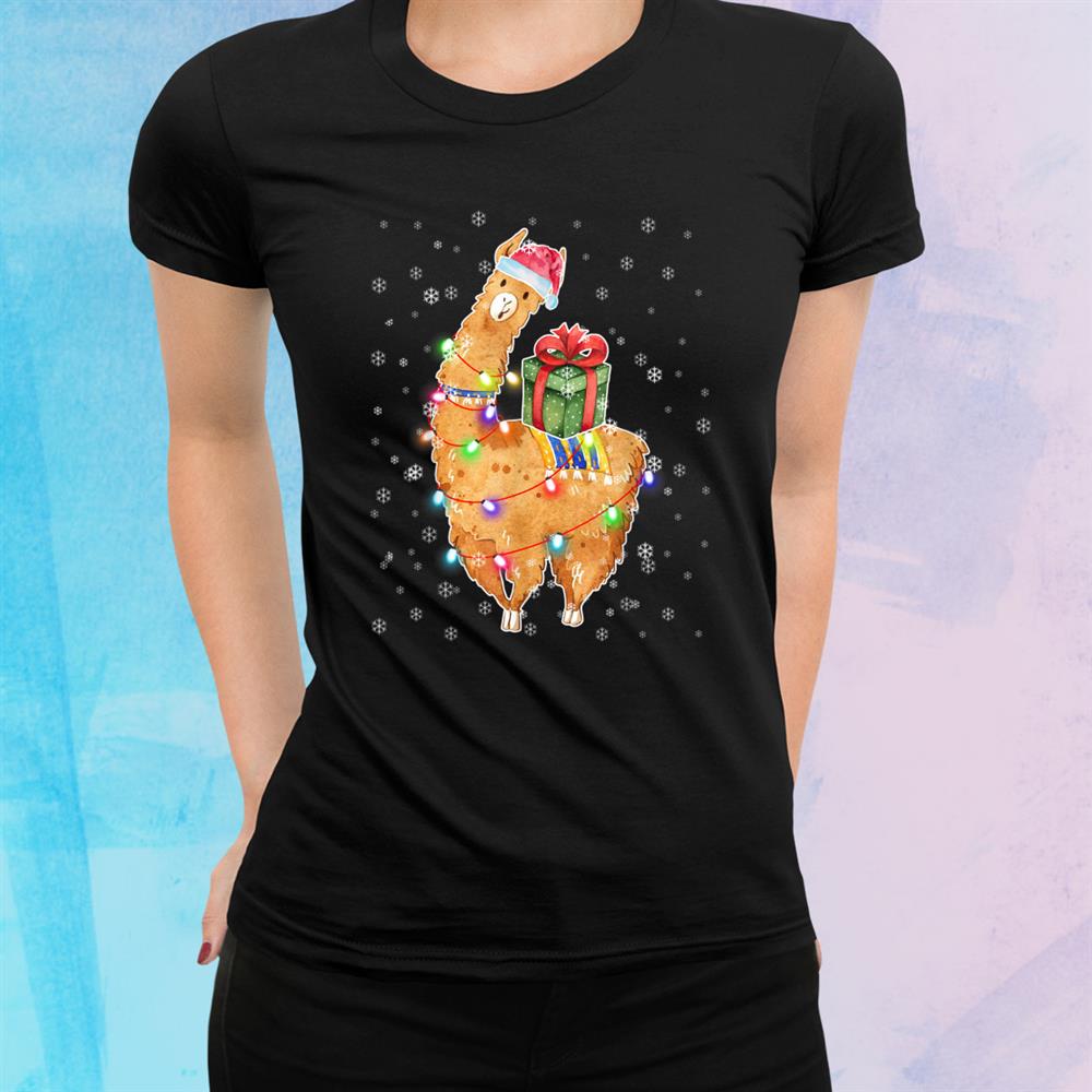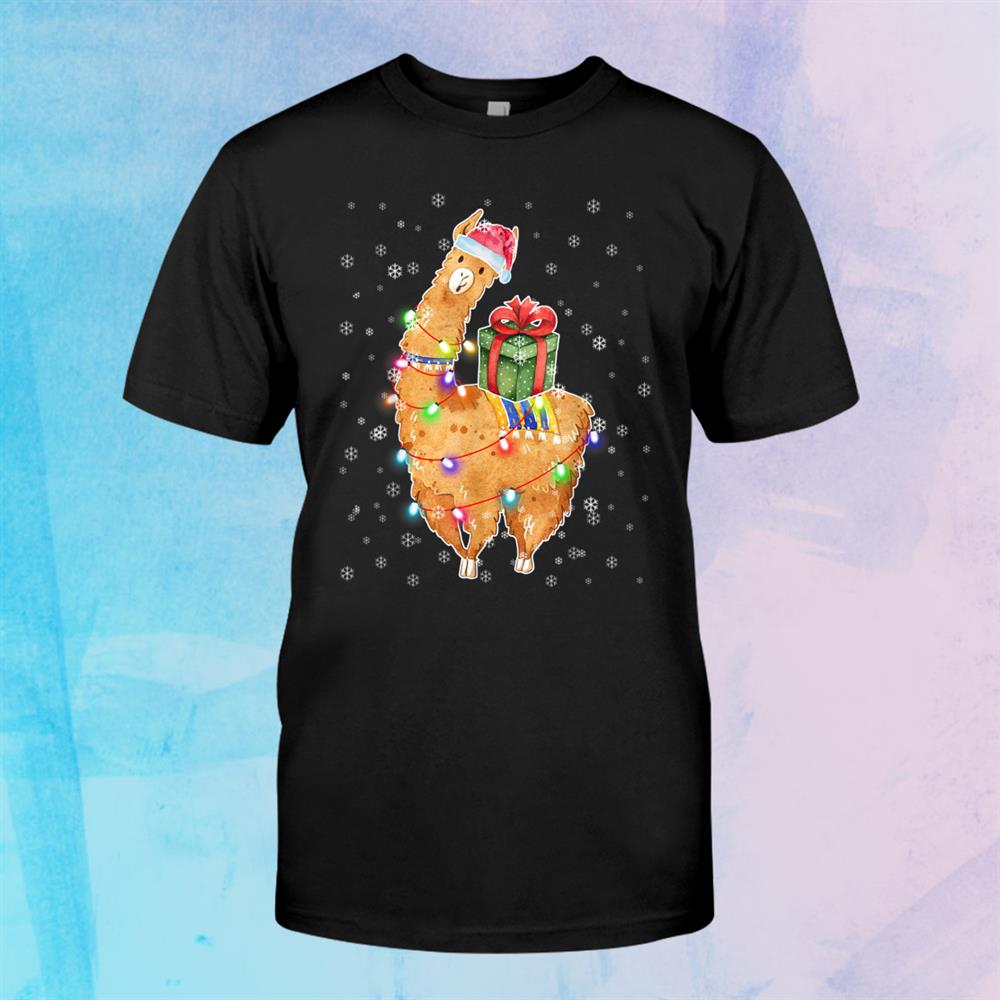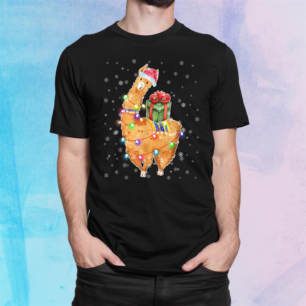 Funny Christmas Llama Santa Hat Lights Xmas Shirt