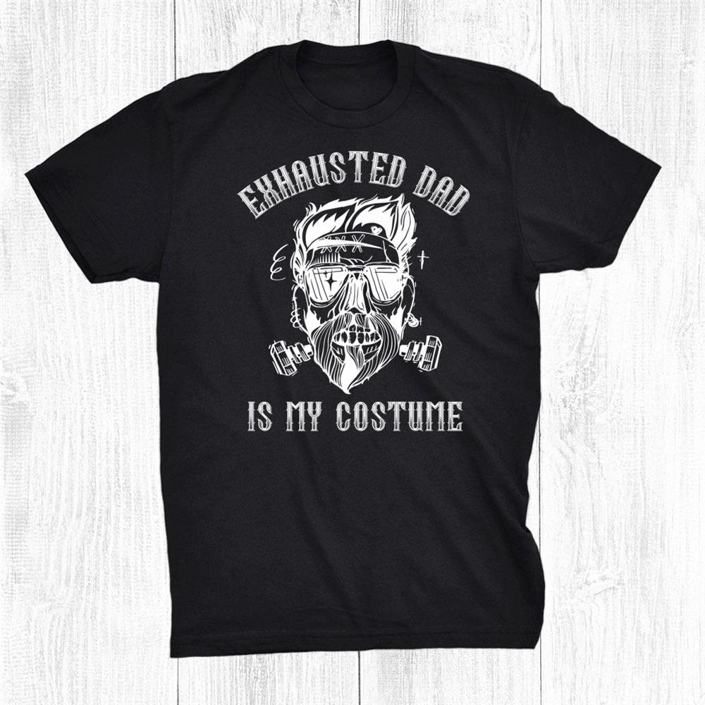 Funny Dad Halloween Exhausted Dad Skull Beard Shirt, hoodie, sweatshirt, long sleeve and ladies T-shirt