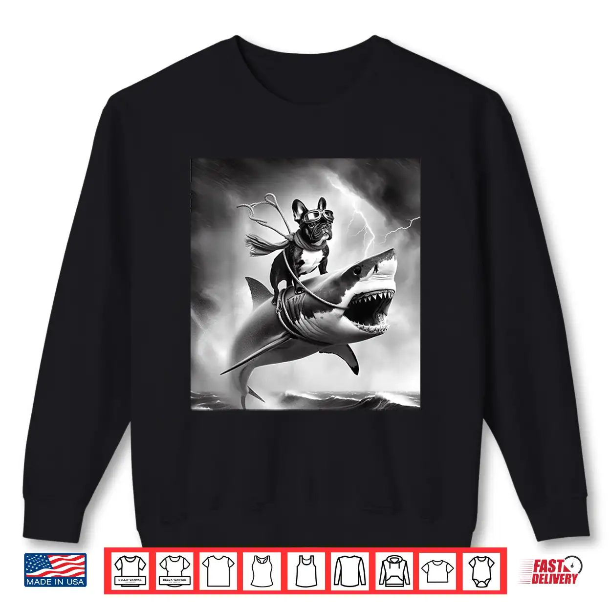 Funny Dog French Bulldog Riding A Shark In Tornado Meme Shirt