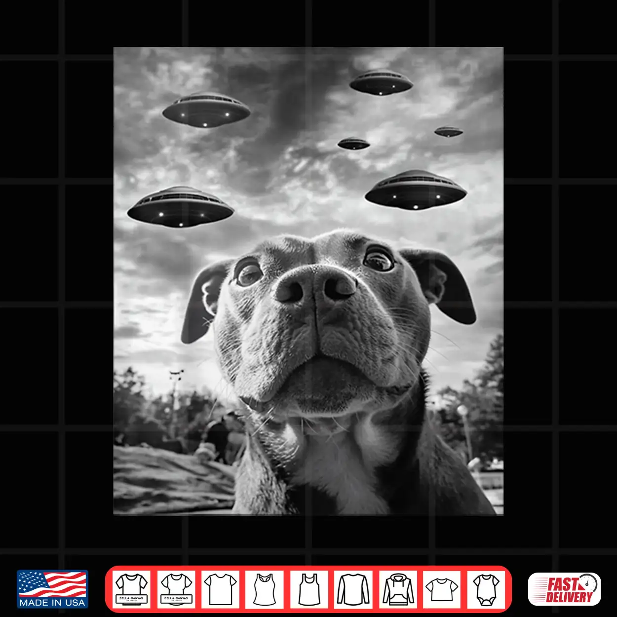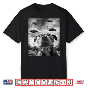 Funny Dog Pitbull Selfie With Ufos Alien Novelty Shirt