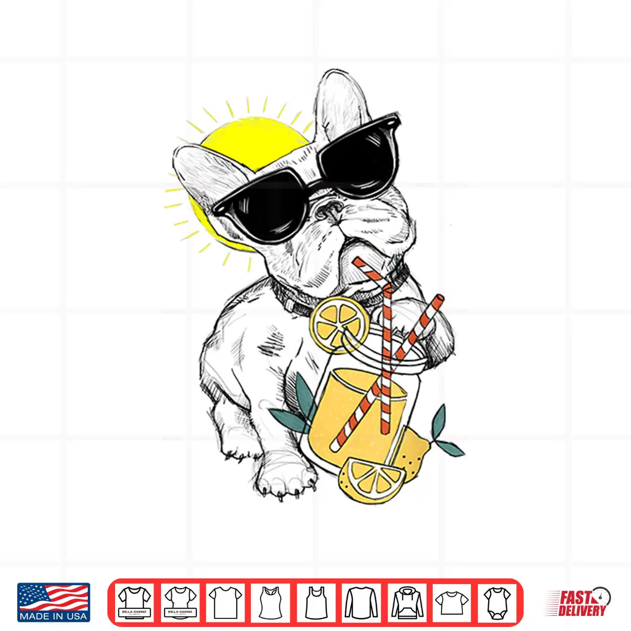 Funny French Bulldog Glasses Summer Lemonade Gift Shirt