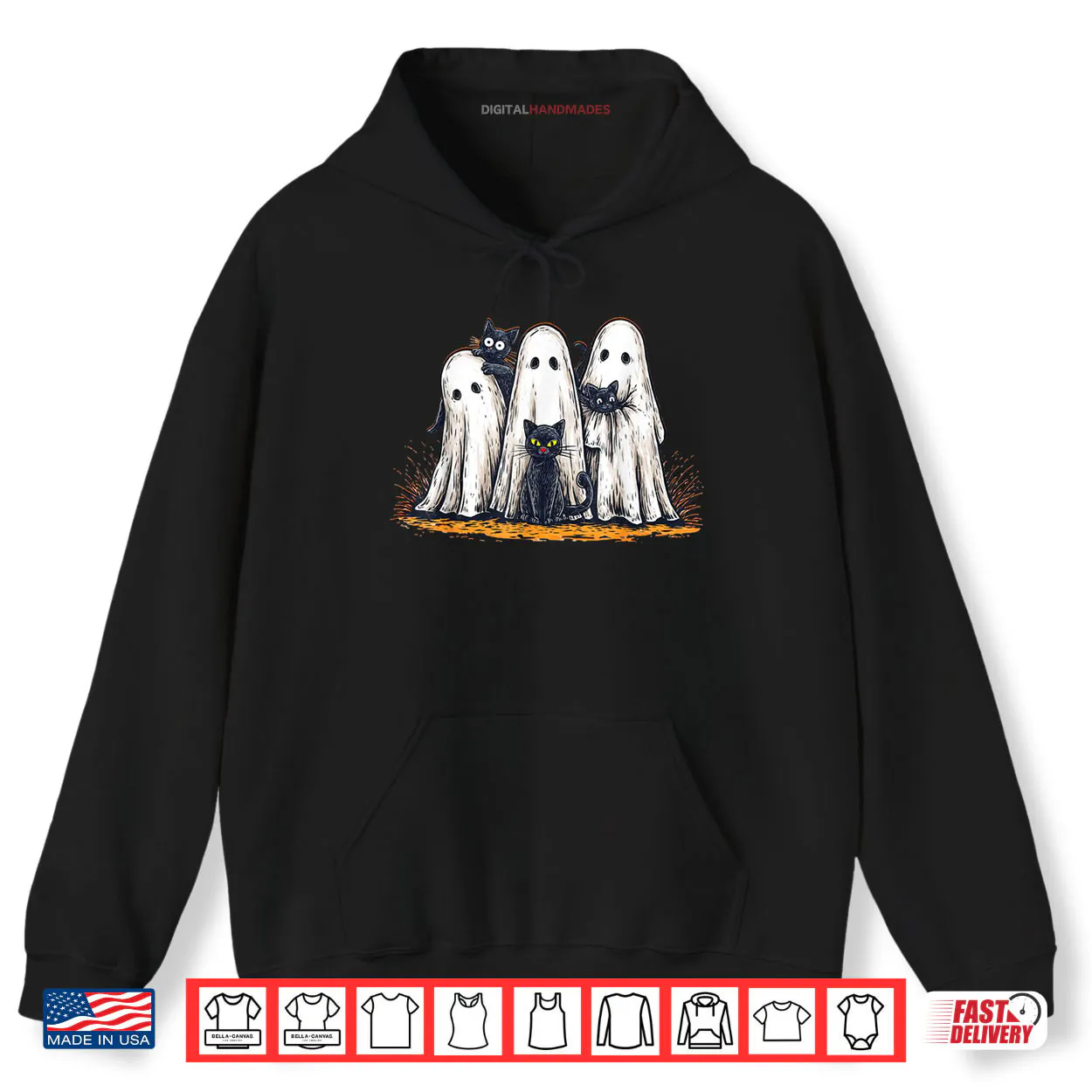 Funny Ghosts Holding Black Cats Halloween Ghost Cat Lovers Shirt