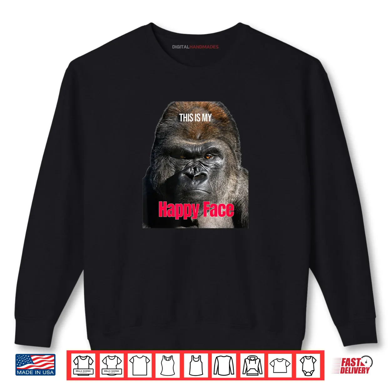 Funny Gorilla “This is My Happy Face” Sarcastic Grumpy Humor Shirt