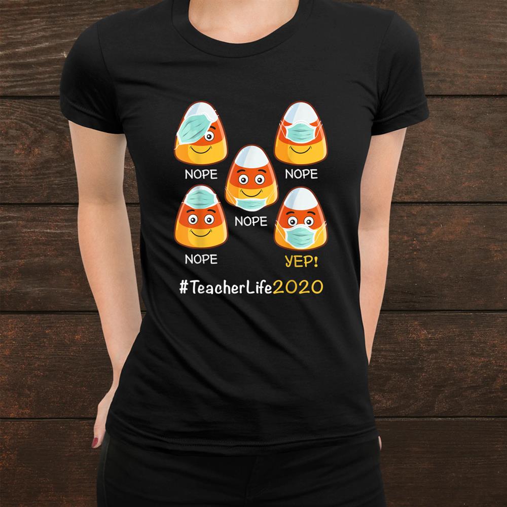 Funny Halloween Teacher Life Candy Corn Wearing Mask Shirt, hoodie, sweatshirt, long sleeve and ladies T-shirt