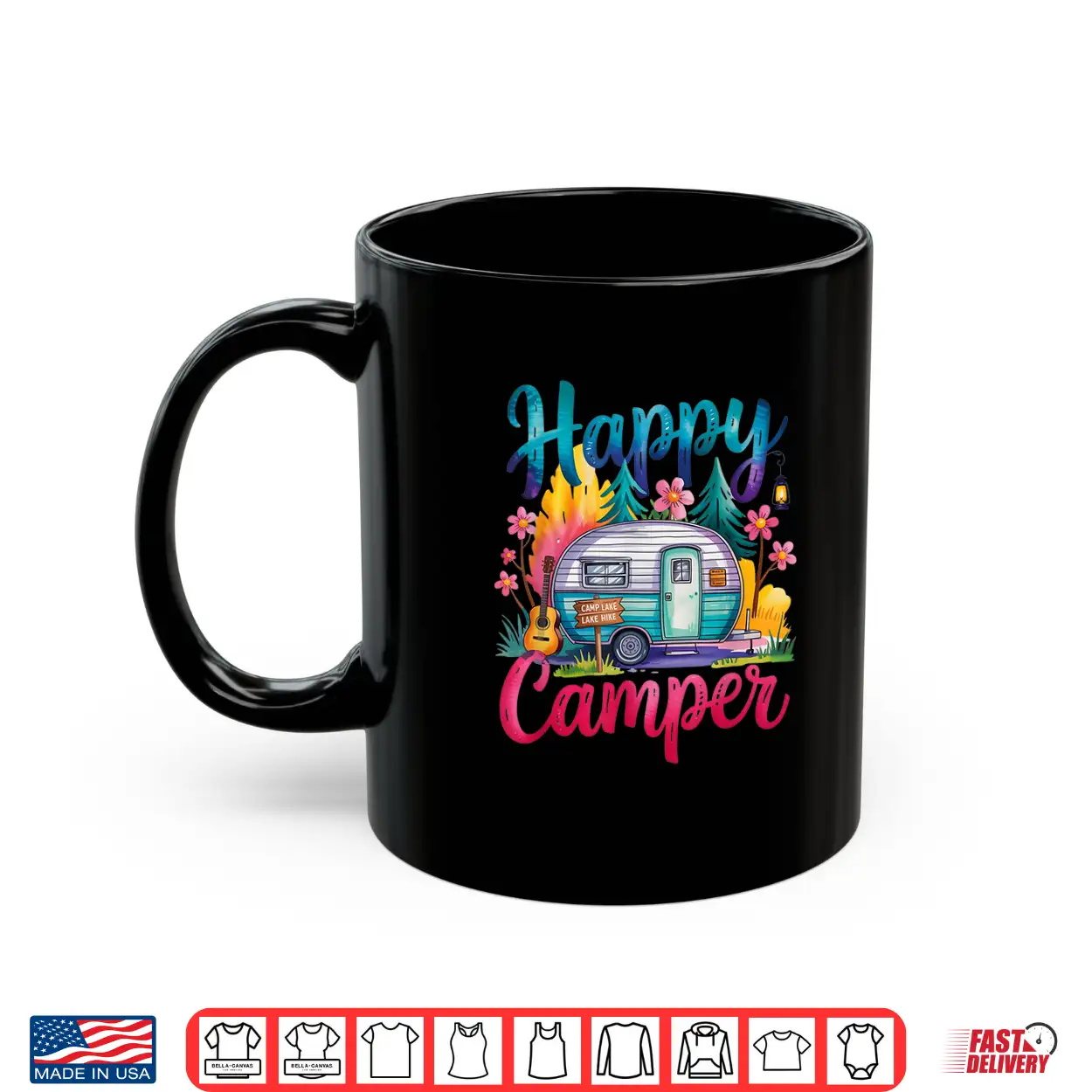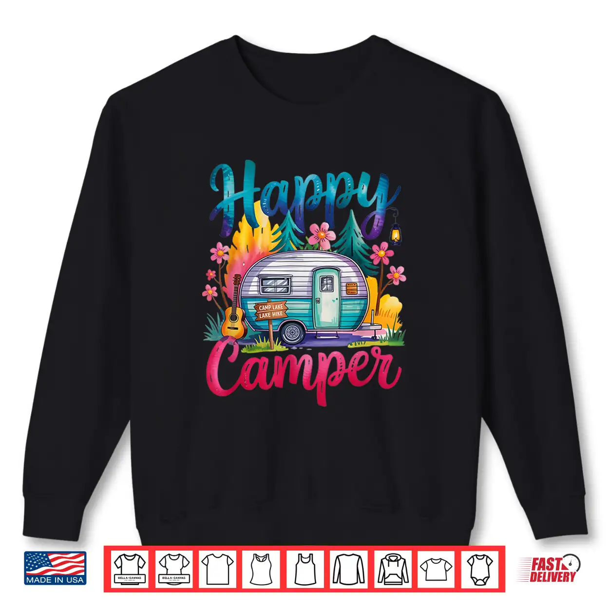 Funny Happy Camper Camping Apparel Trailer Rv Kids Women Shirt
