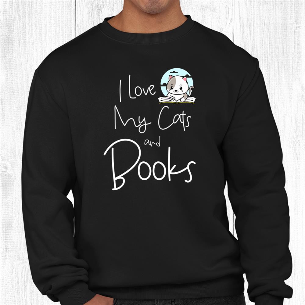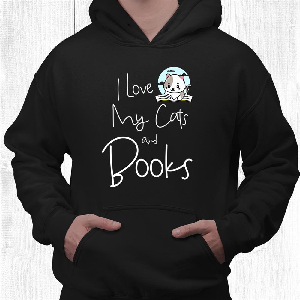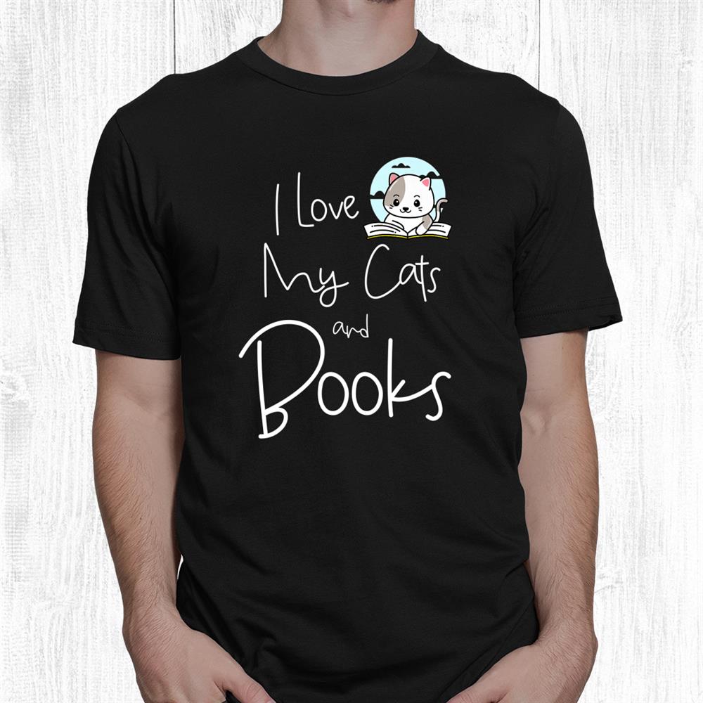 Funny I Love My Cats And Books Cat Owner Reading Lover Shirt