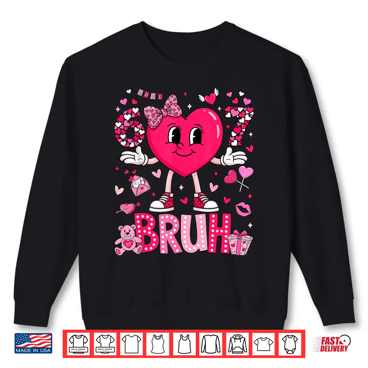 Funny Meme 67 Six Seven Bruh Valentine Heart Women Girl Kids Shirt