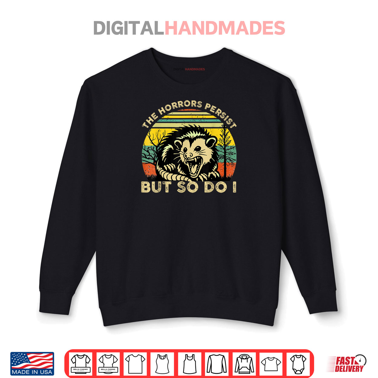 Funny Opossum The Horrors Persist But So Do I Mental Health Shirt
