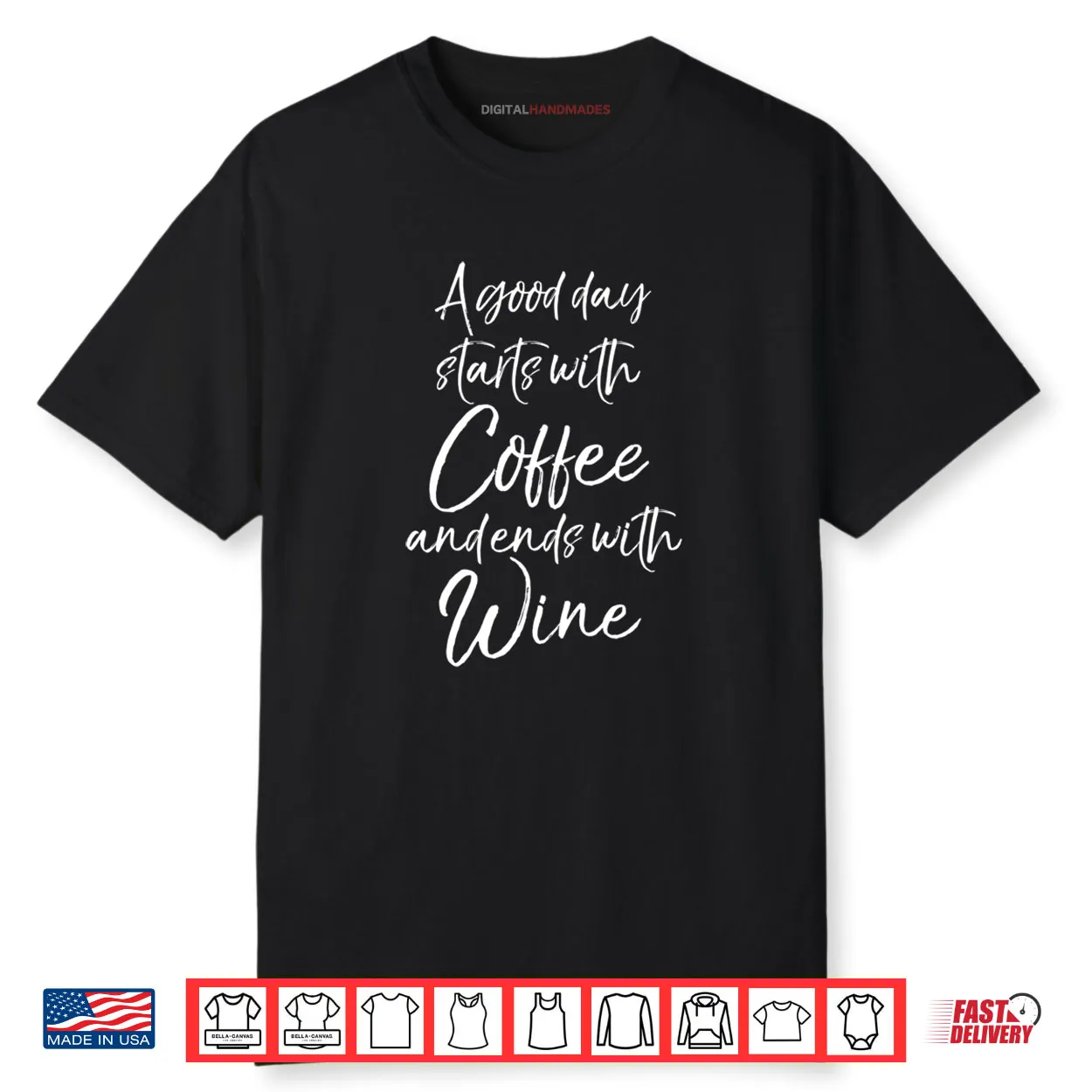 Funny Quote A Good Day Starts with Coffee and Ends with Wine Shirt