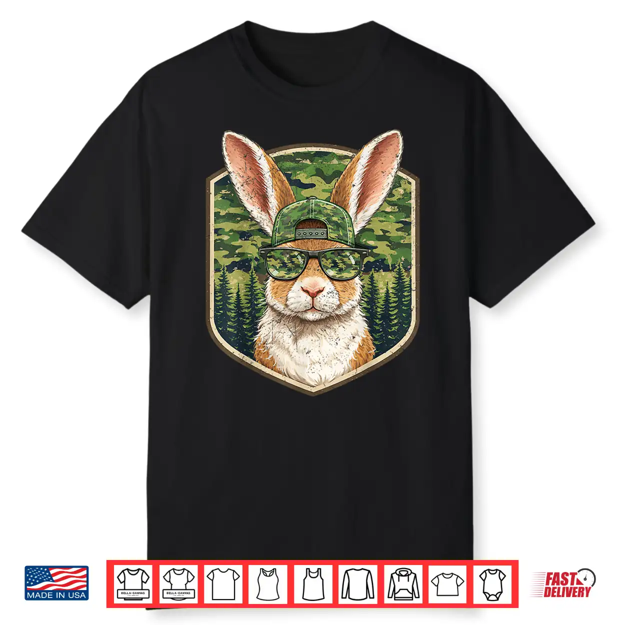 Funny Rabbit Bunny Hunting Camo Happy Easter Men Kid Boy Shirt