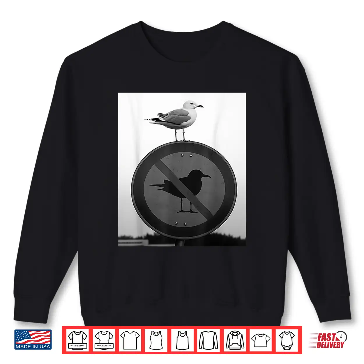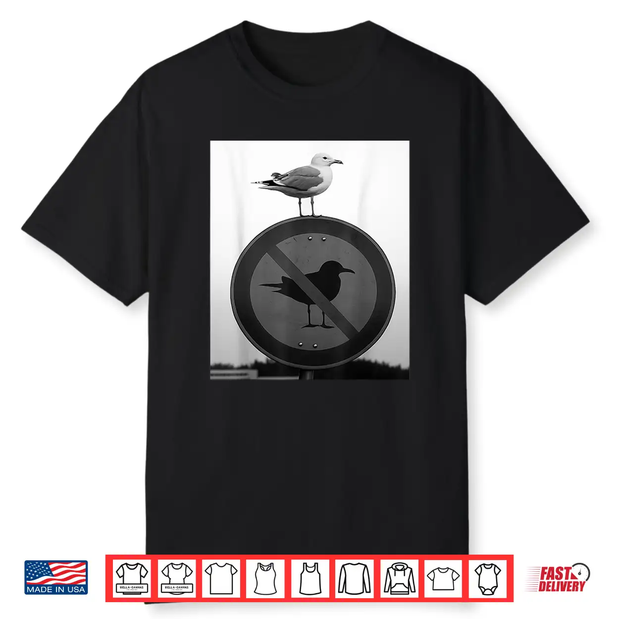 Funny Seagull Defying Rules Rebel Bird On Forbidden Sign Shirt