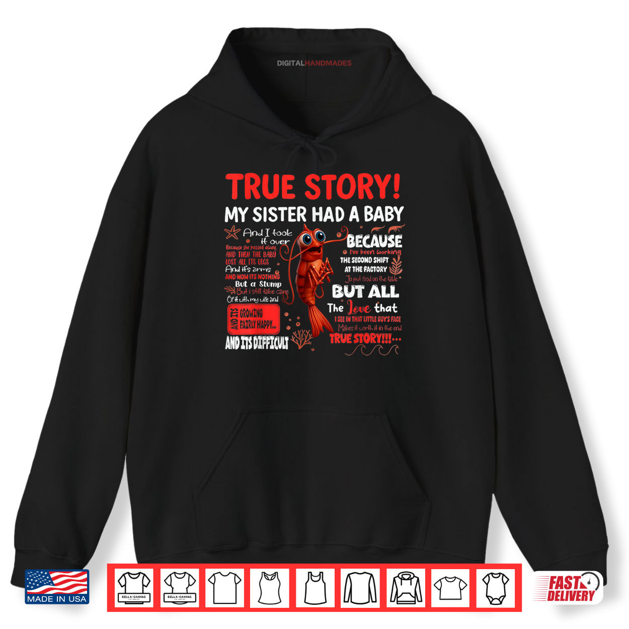 Funny Shrimp True Story My Sister Had A Baby Meme Shirt, Funny Shrimp Shirt, True Story Shirt, Sister Had A Baby Shirt, Meme Shirt, Pregnancy Announcement Shirt, Family Humor Shirt, Internet Meme Shirt, Humorous Shirt, Baby Shower Shirt, Sarcastic Shirt