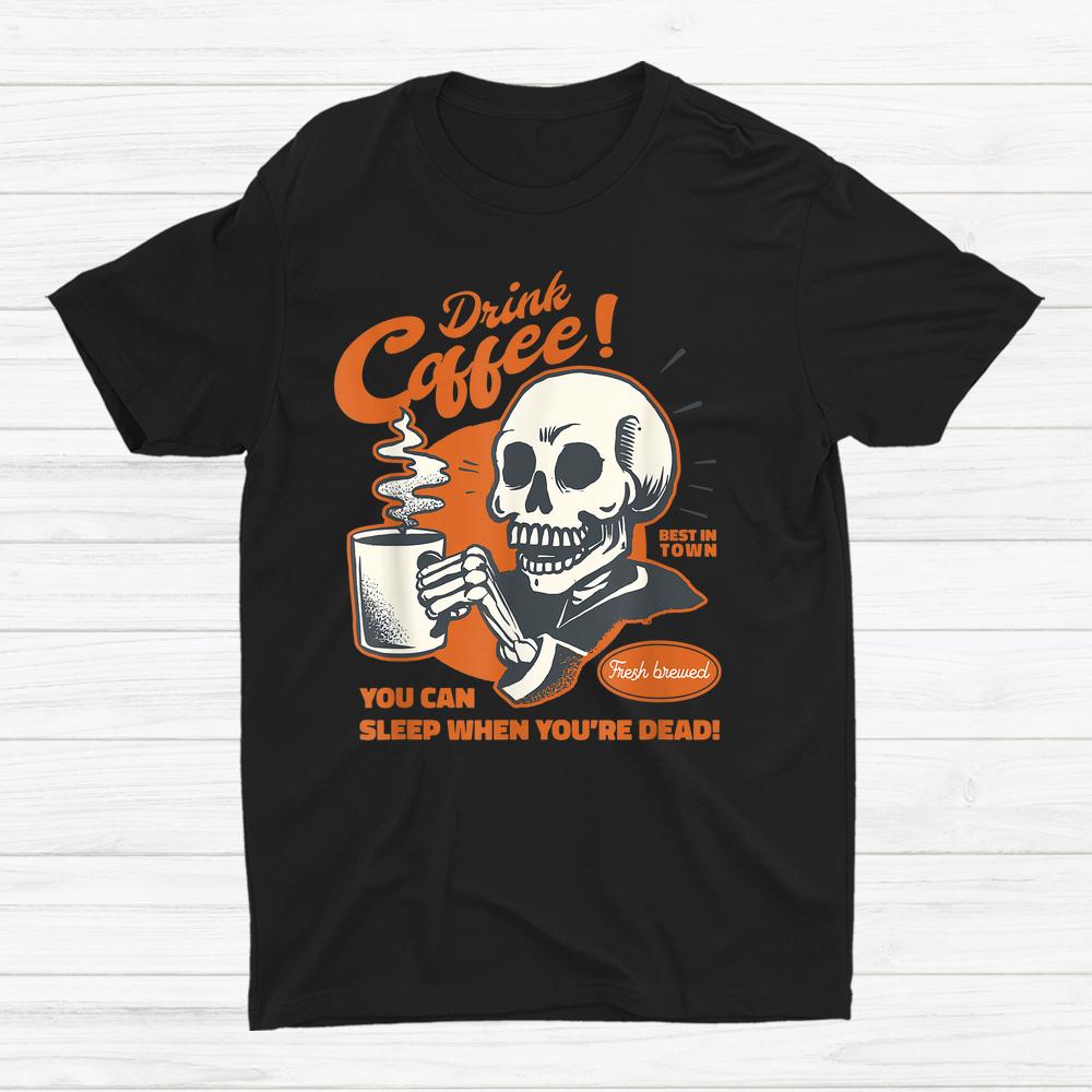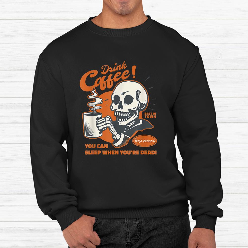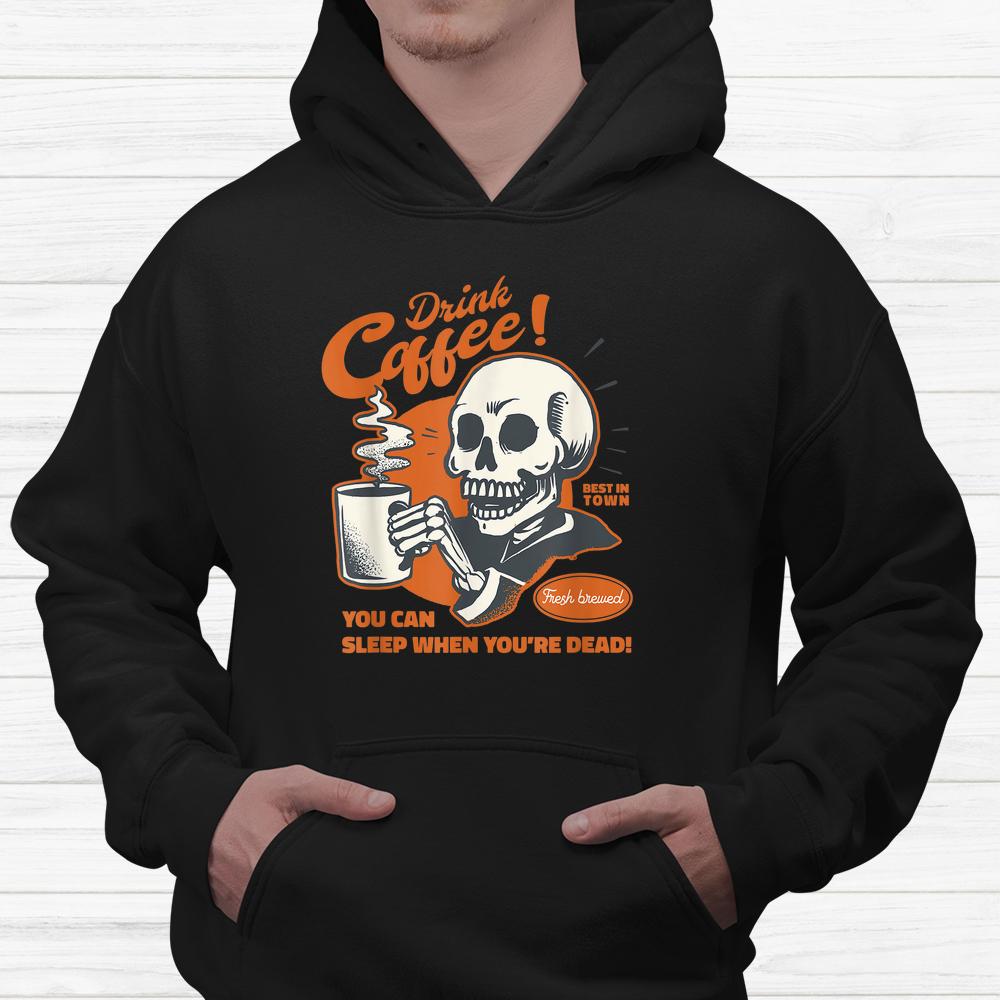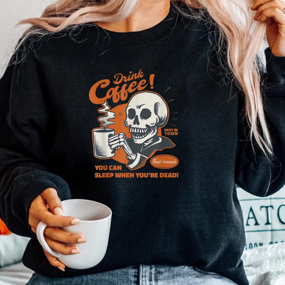 Funny Skeleton Drinking Coffee Halloween Spooky Shirt, hoodie, sweatshirt, long sleeve and ladies T-shirt