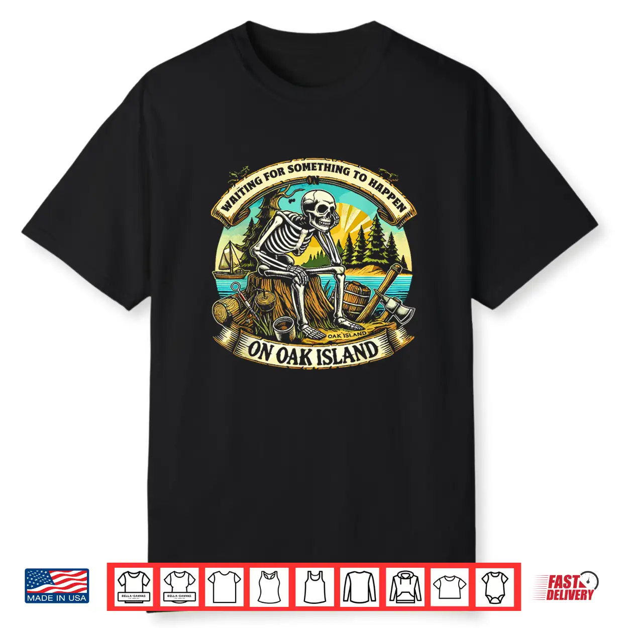 Funny Skeleton Waiting Something To Happen On Oak Island Shirt