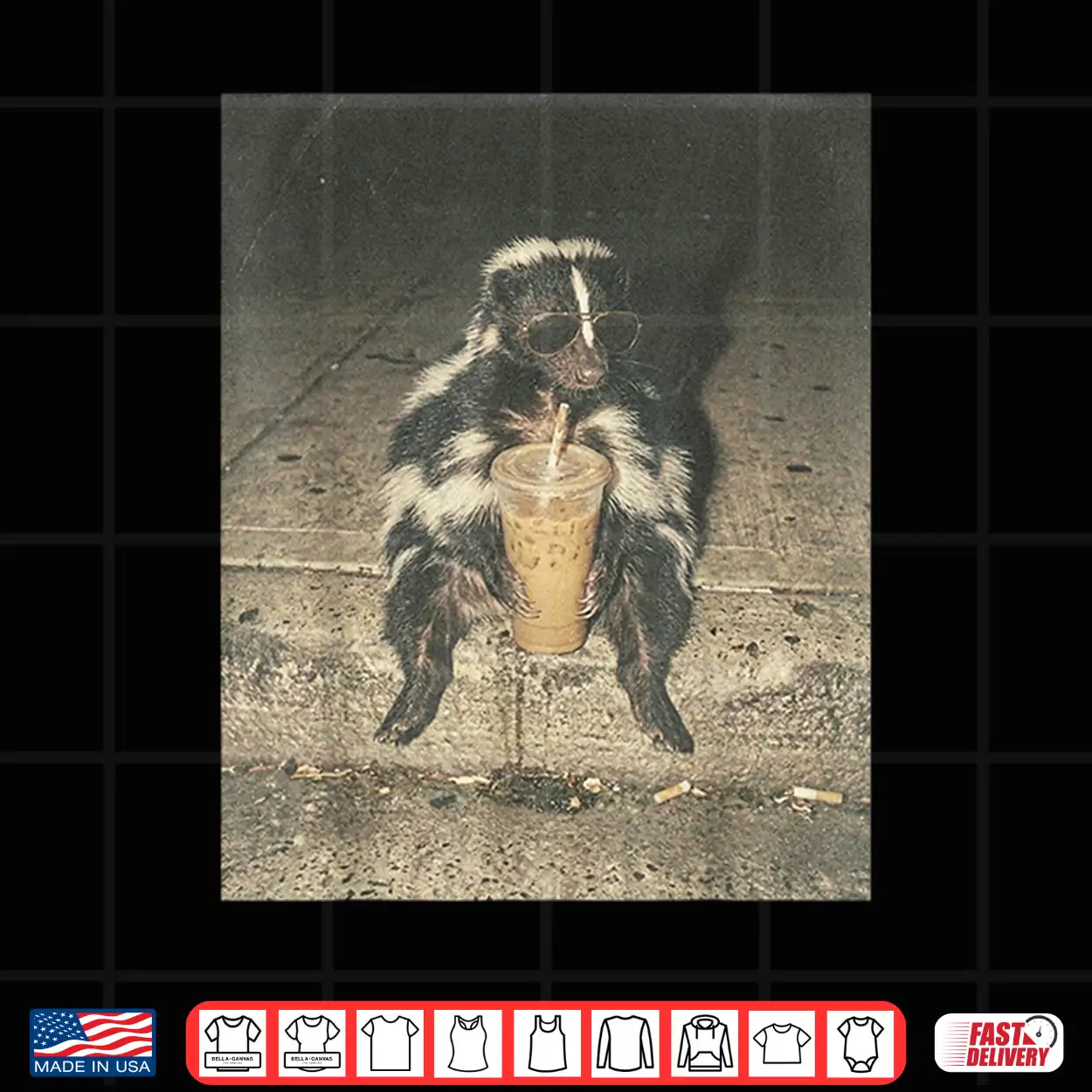 Funny Skunk Drinking Iced Coffee Meme Trash Animal Graphic Shirt