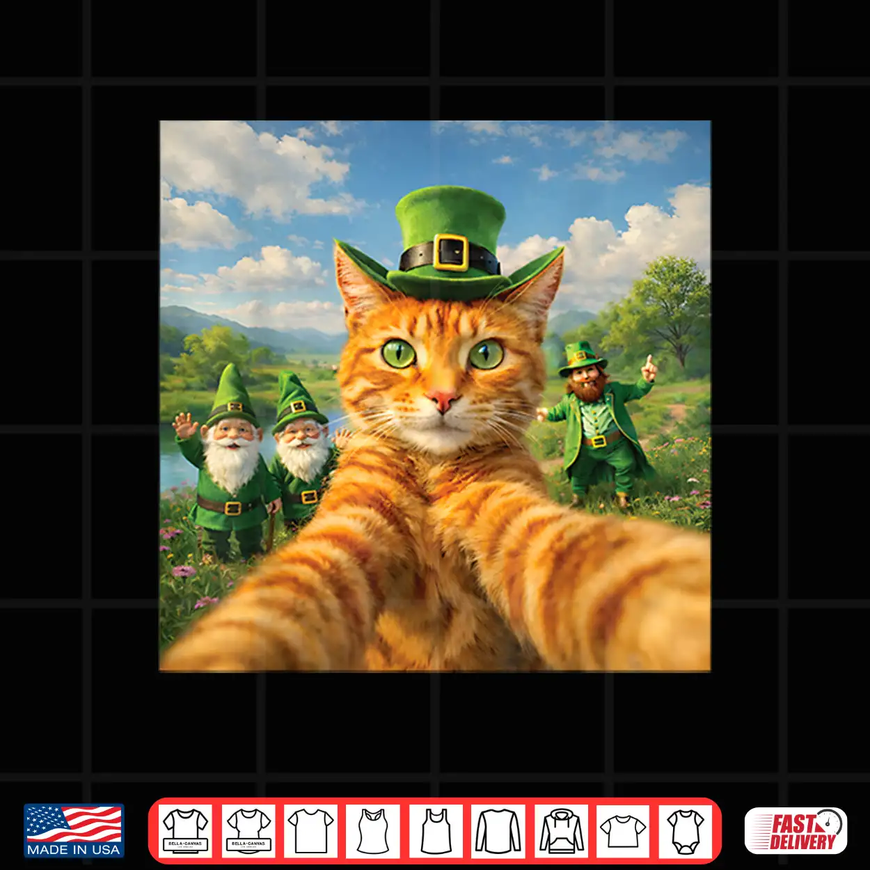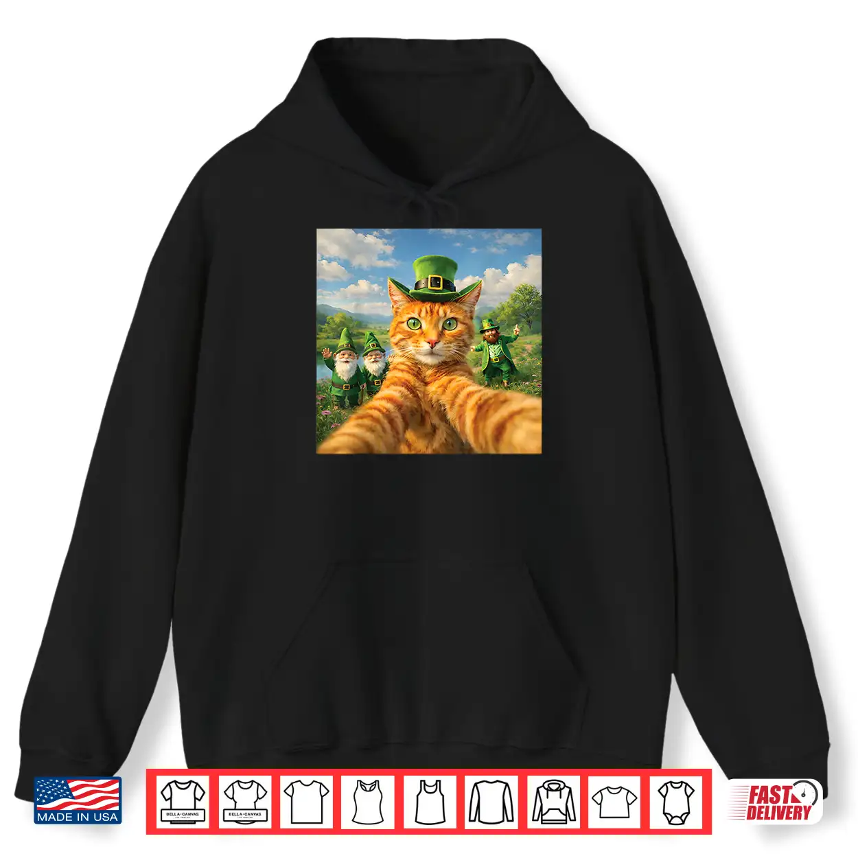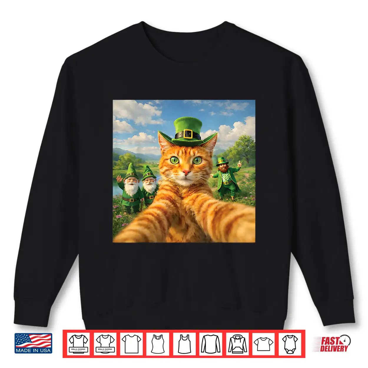 Funny St Patrick’S Day Cat Selfie With Leprechaun Shirt