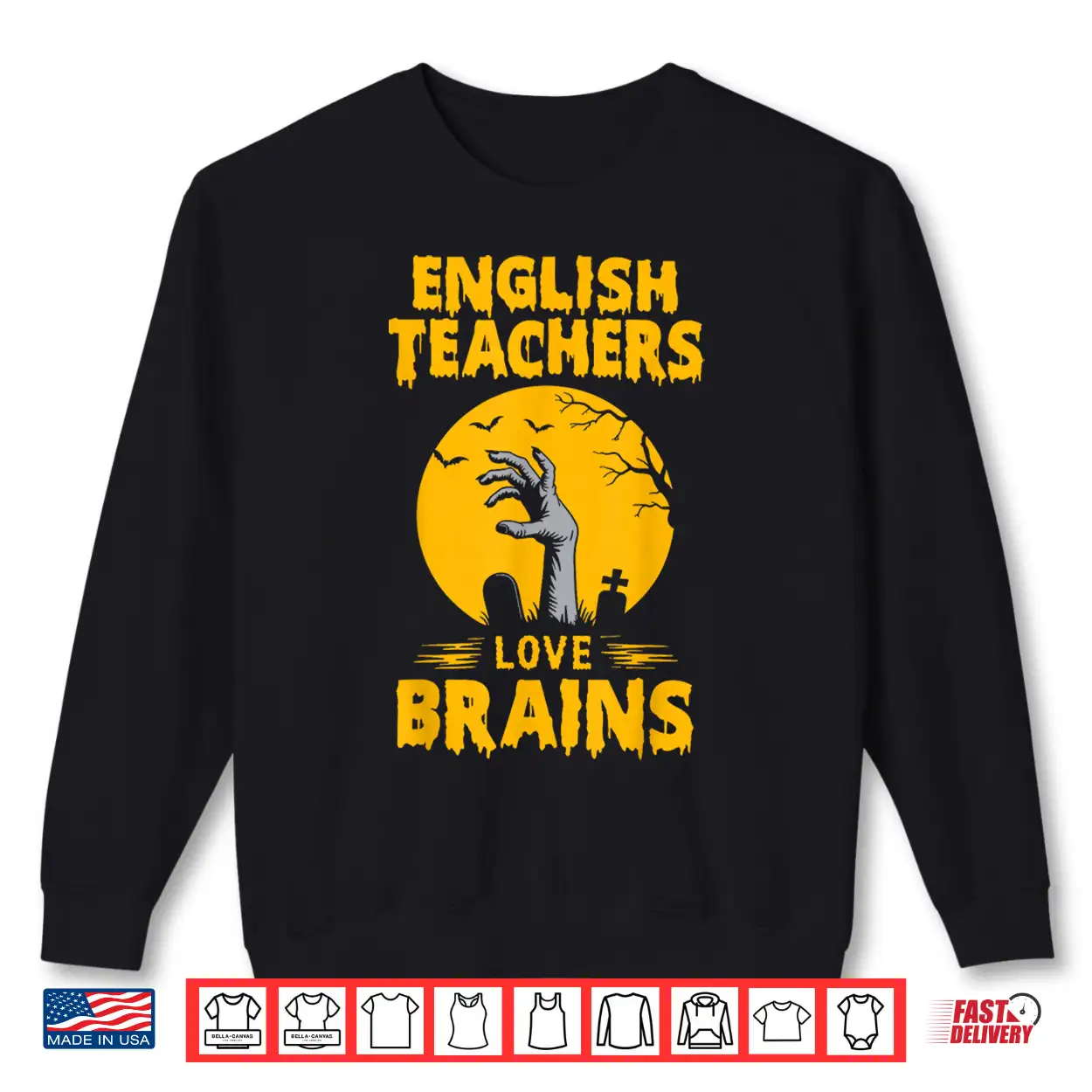 Funny Teacher Halloween Shirts English Teachers Love Brains Shirt