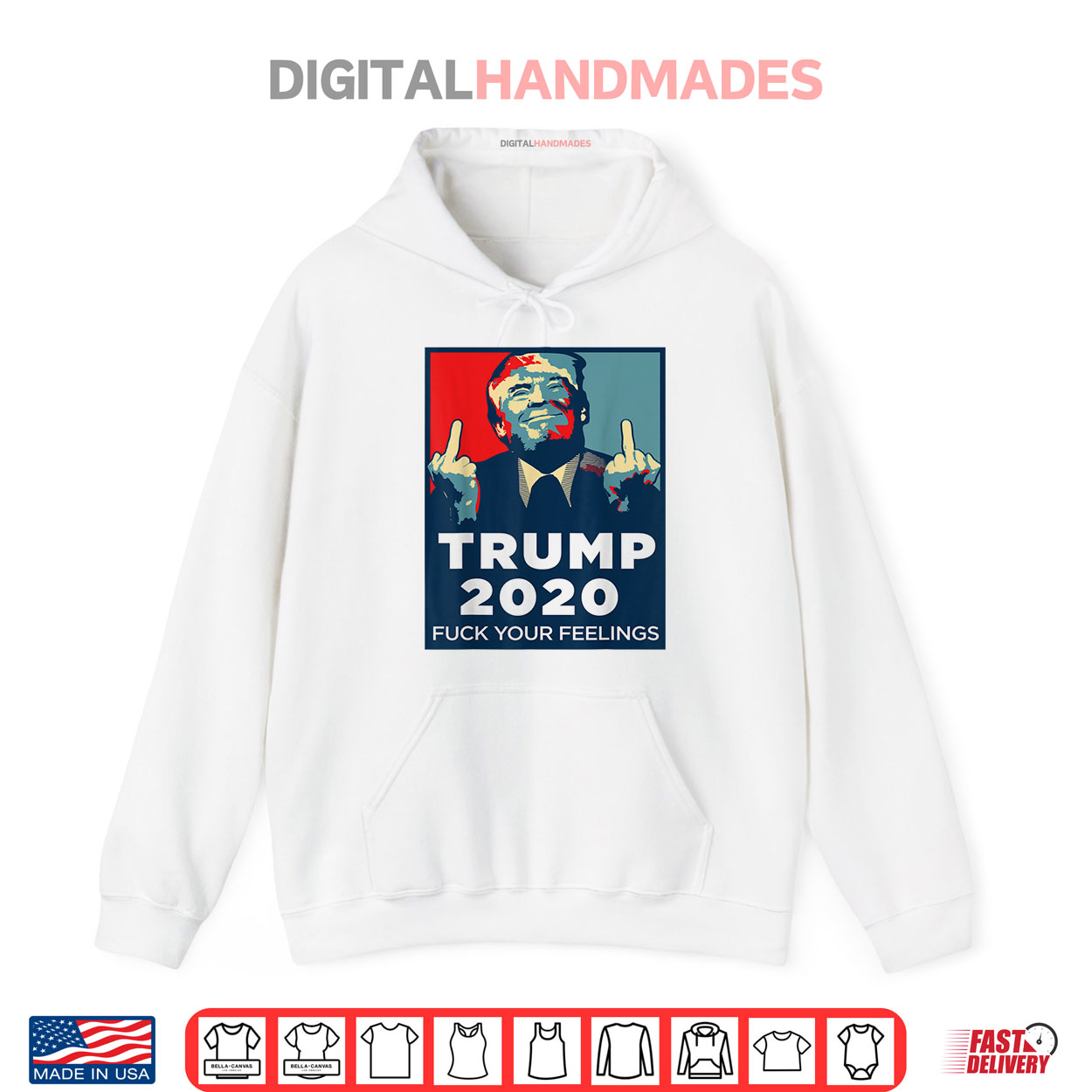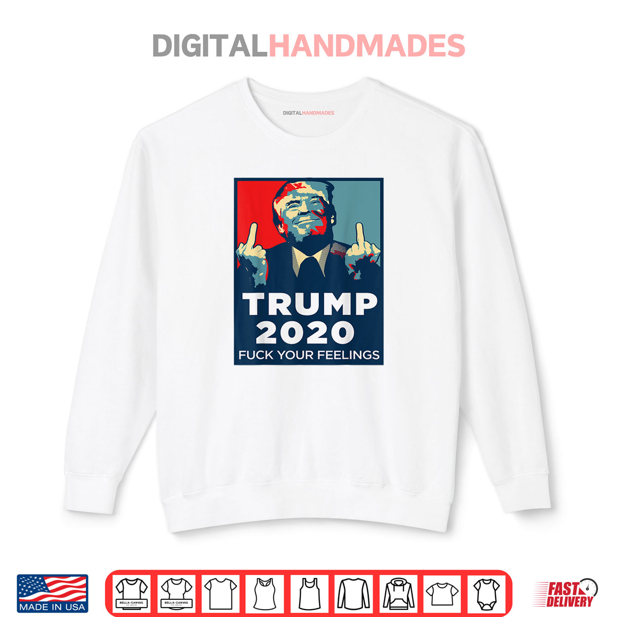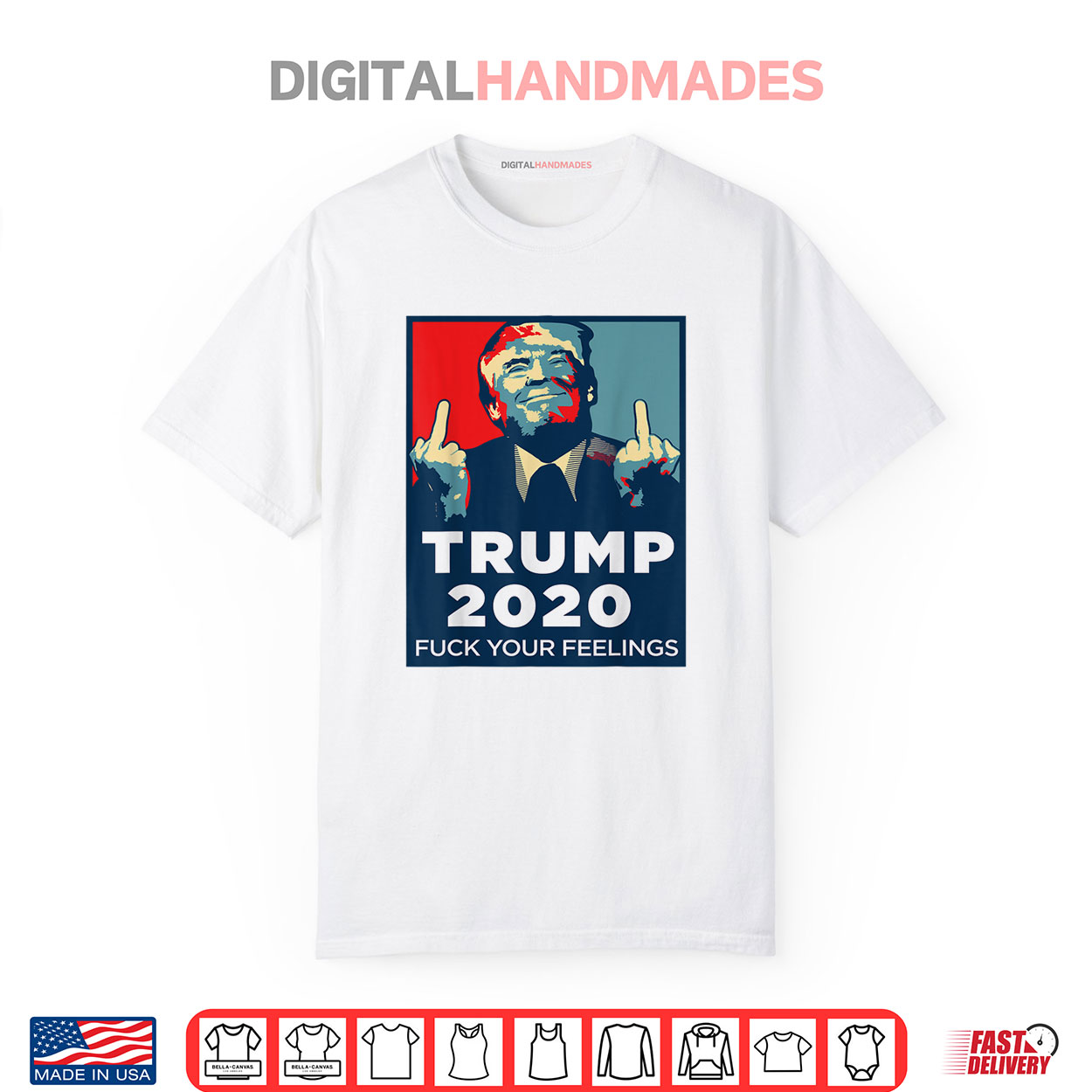 funny trump fuck your feelings, bold political graphic tee, spring satirical apparel, funny trump humor shirt, bold feelings design, playful casual spring fashion, lighthearted satire tee, springtime quirky style, humorous fuck shirt, cute political apparel
