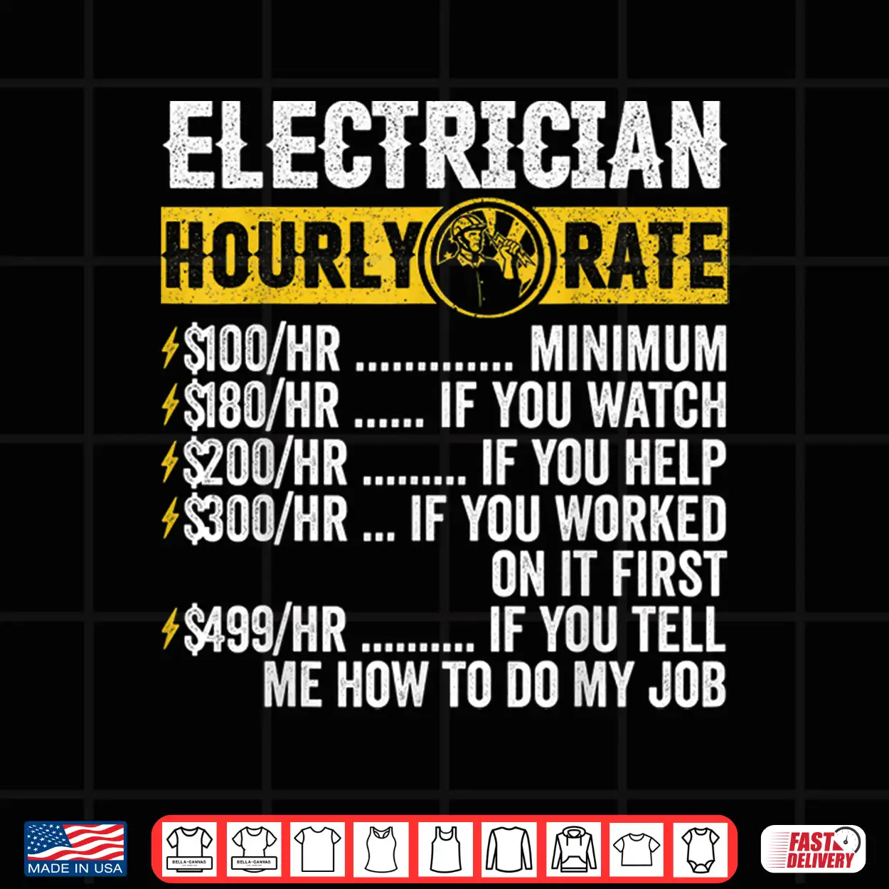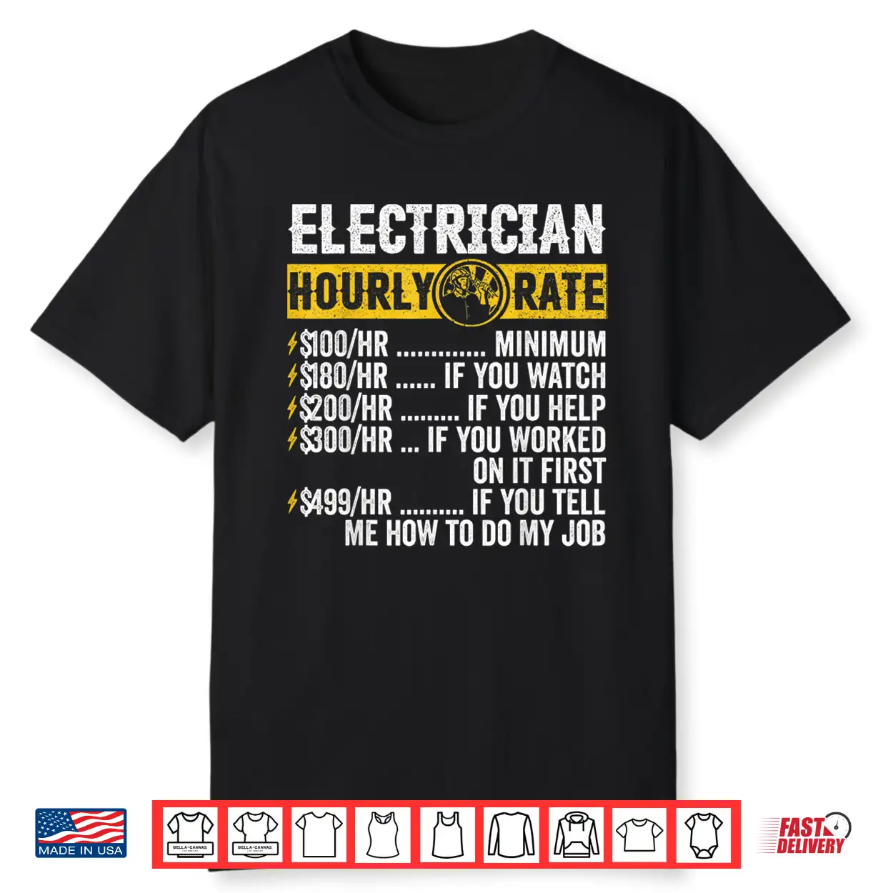 Funny Vintage Electrician Apparel Hourly Rate Shirt
