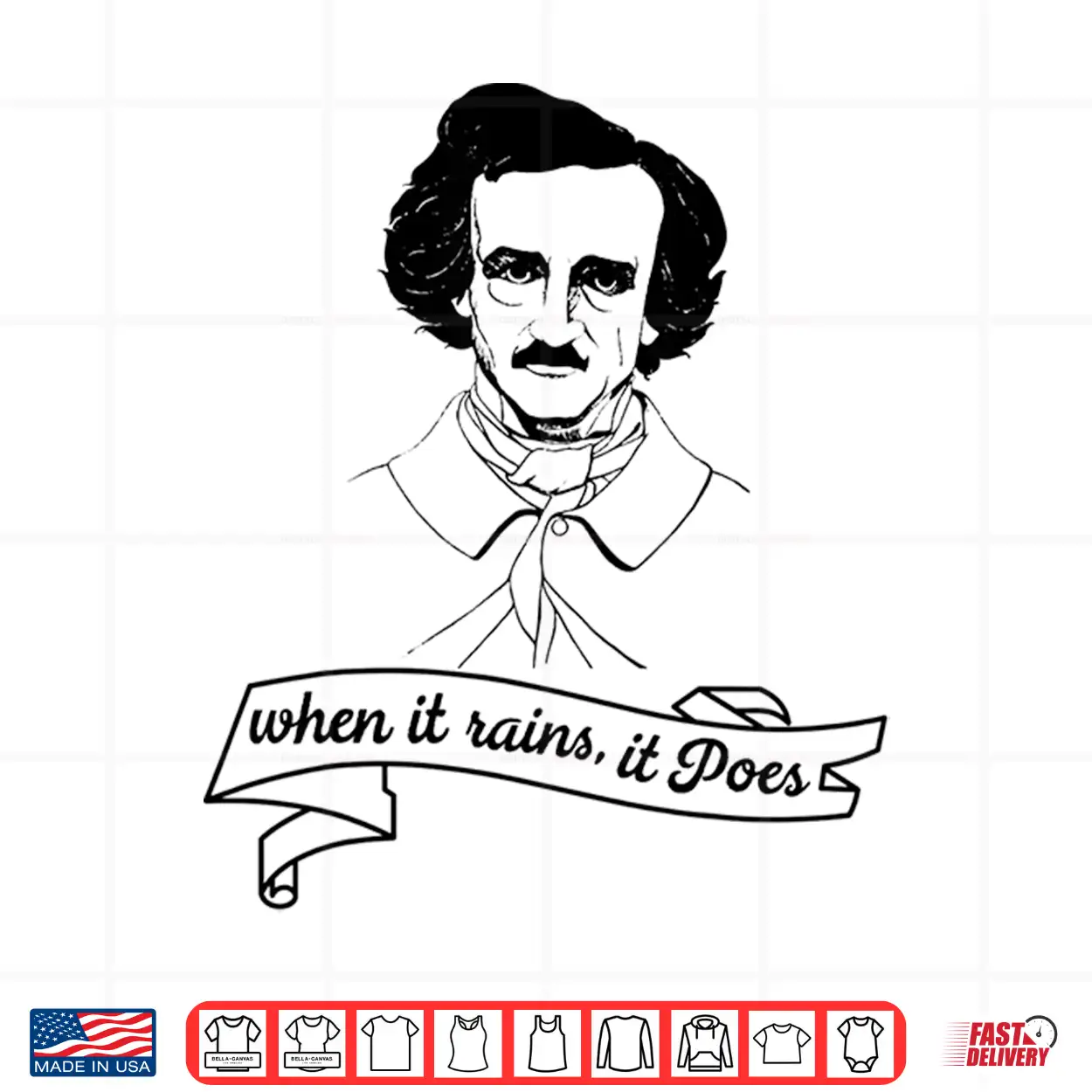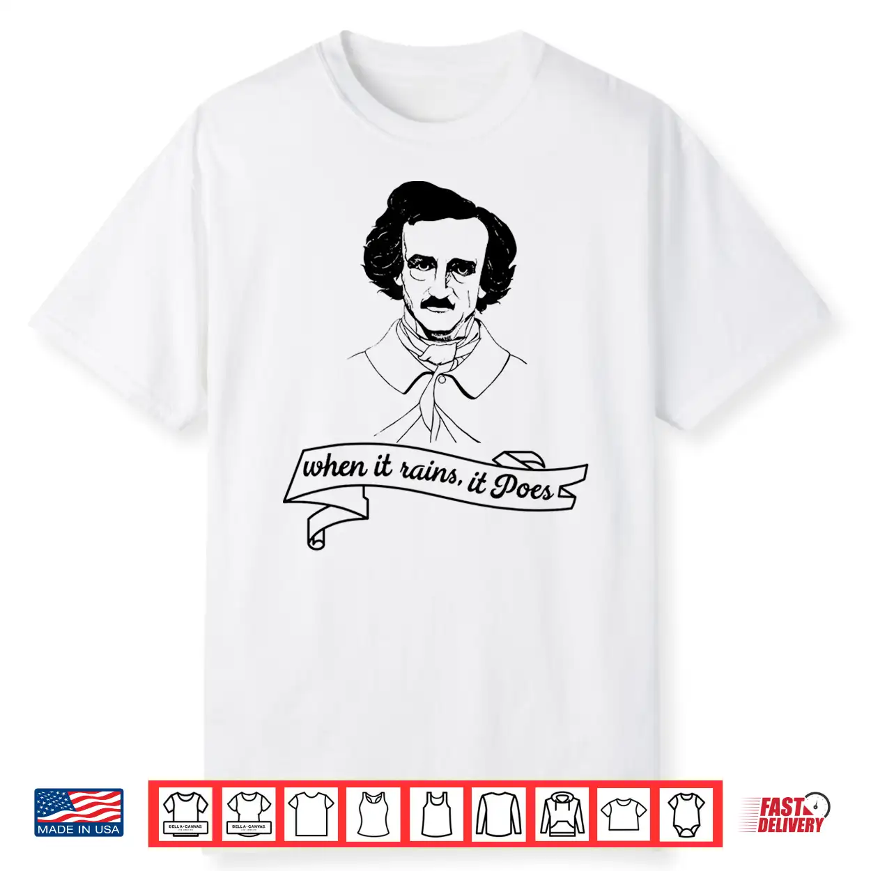 Poetry, Pun, Dark, Author, Edgar Allan Poe, Literary Humor, Classic, Men Women, When It Rains It Poes, Goth