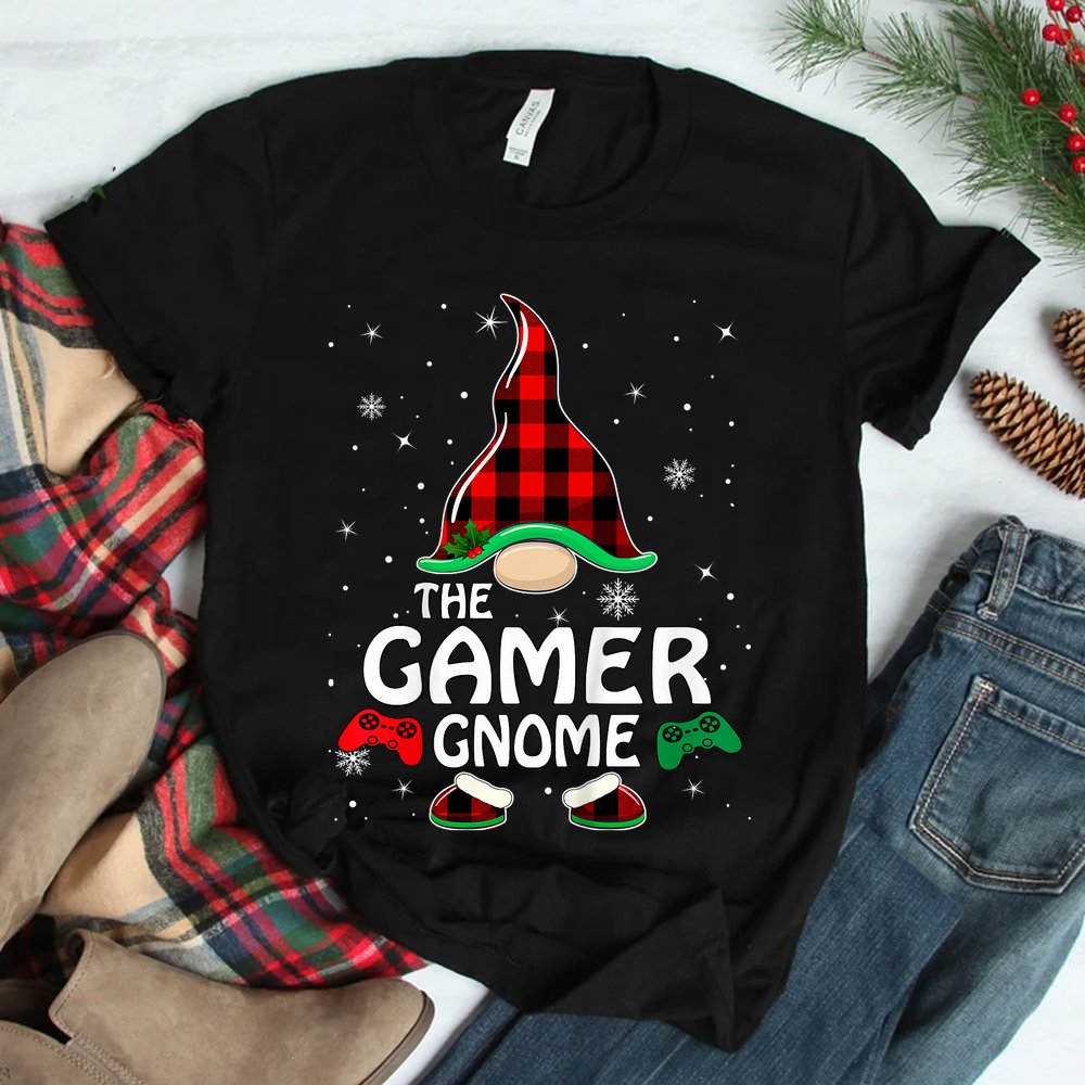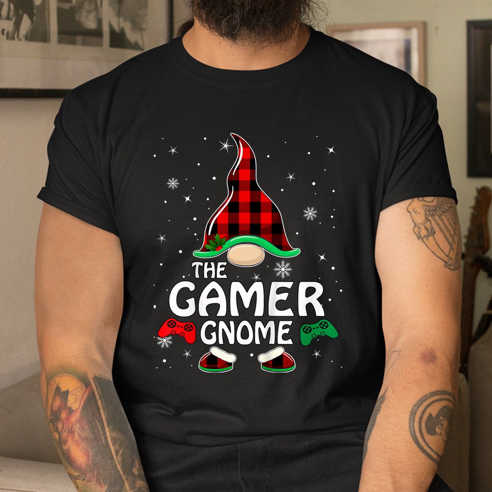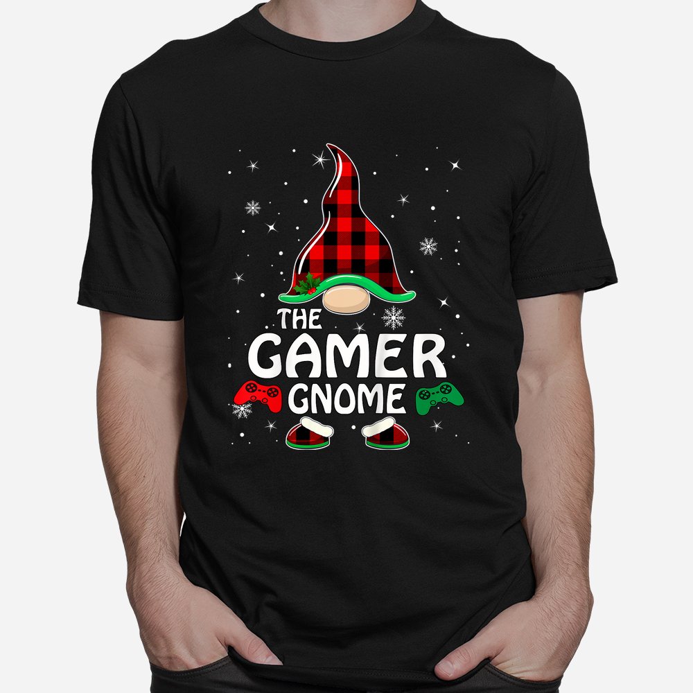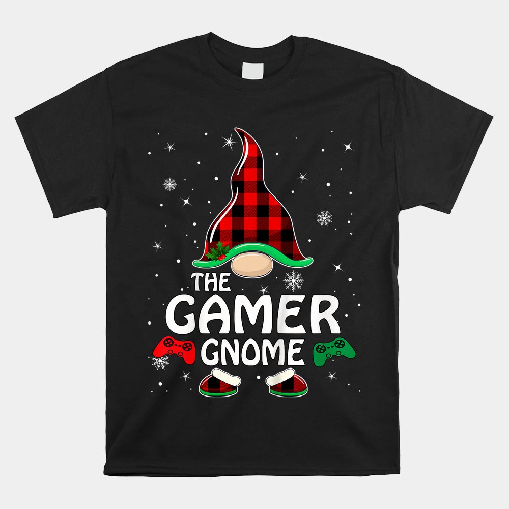 Gamer Gnome Buffalo Plaid Matching Family Christmas Pajama Shirt