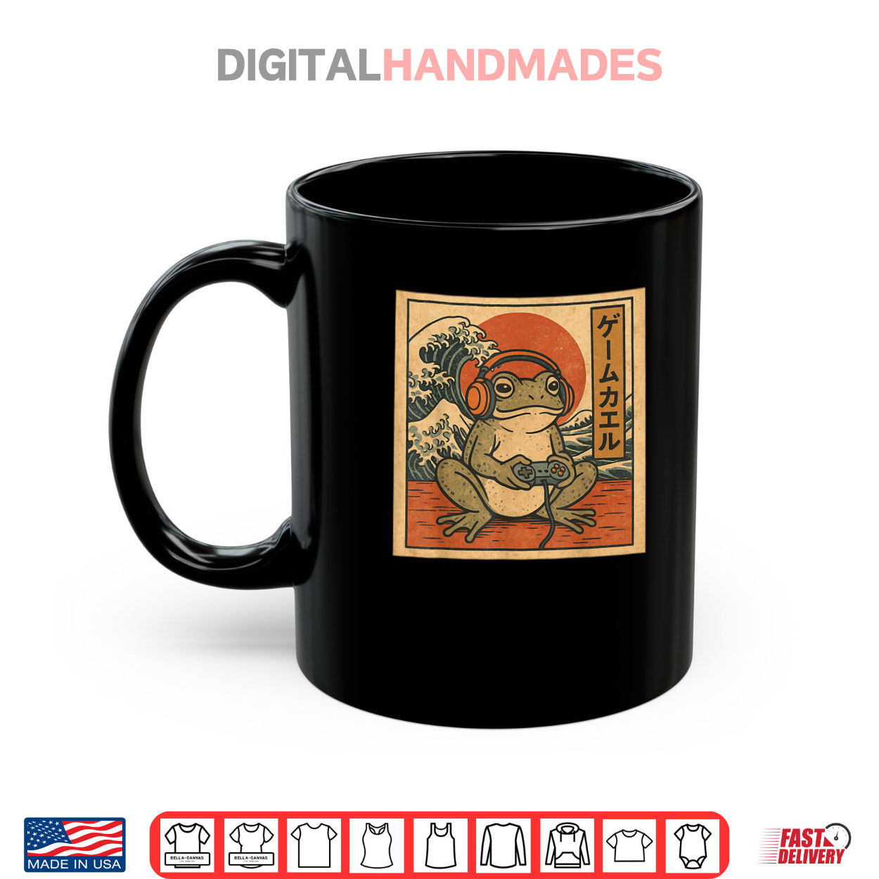 gaming frog art, ukiyo e japanese, gamer anime, frog graphic, japanese art, gaming humor, traditional style, anime fan, retro gaming, funny frog