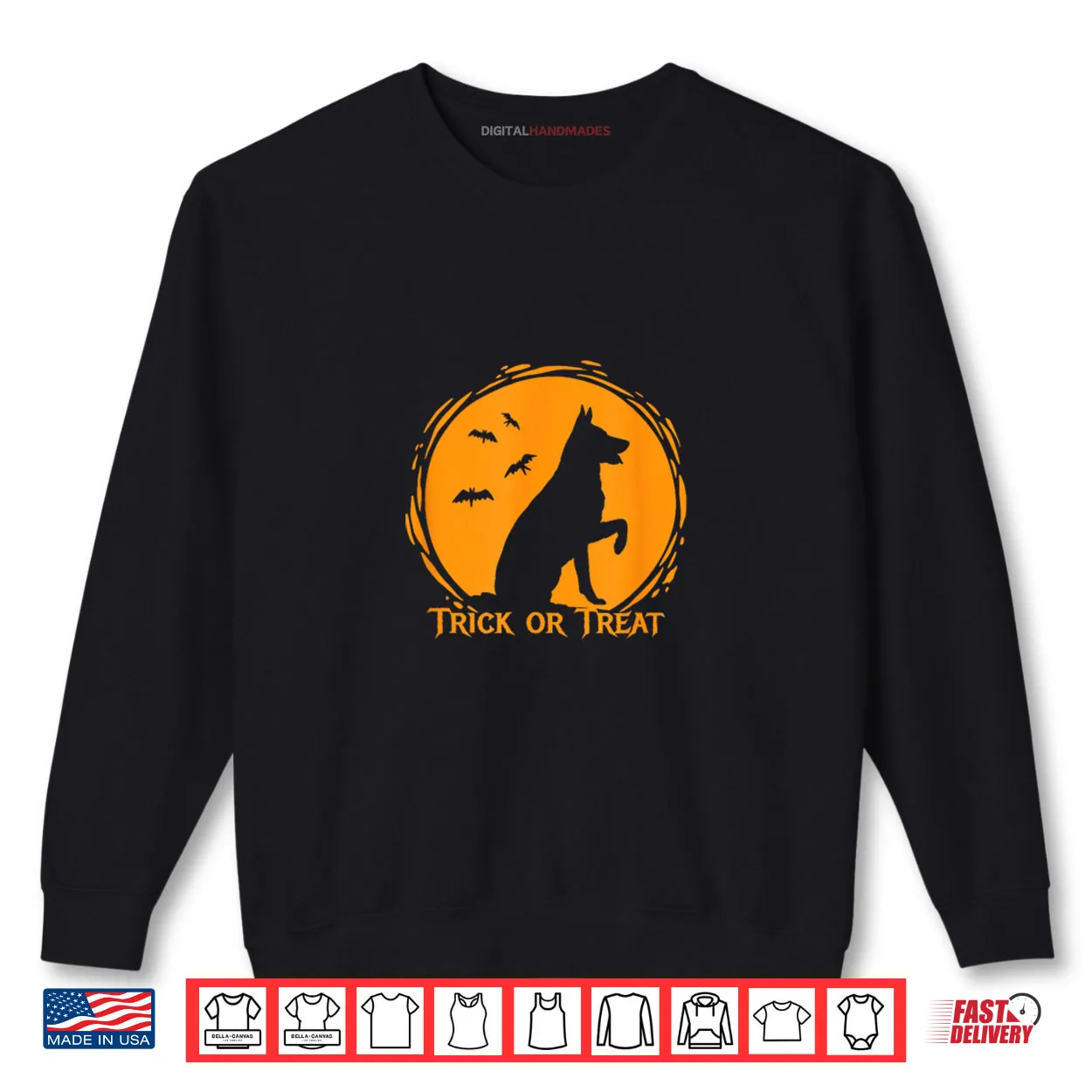 German Shepherd, Trick or Treat, Halloween, Funny, Witty, Humor, Spooky, Quote, Dog Lover, Statement