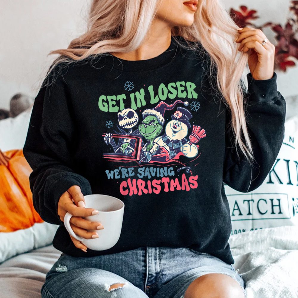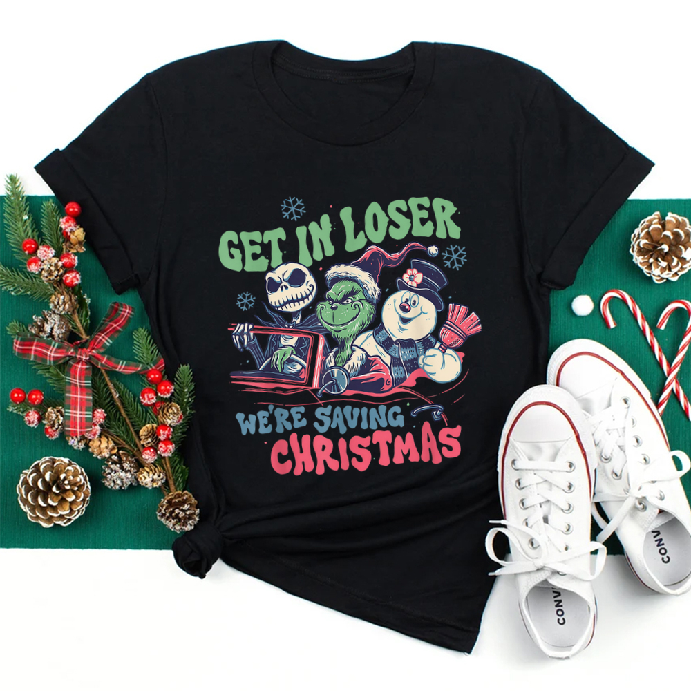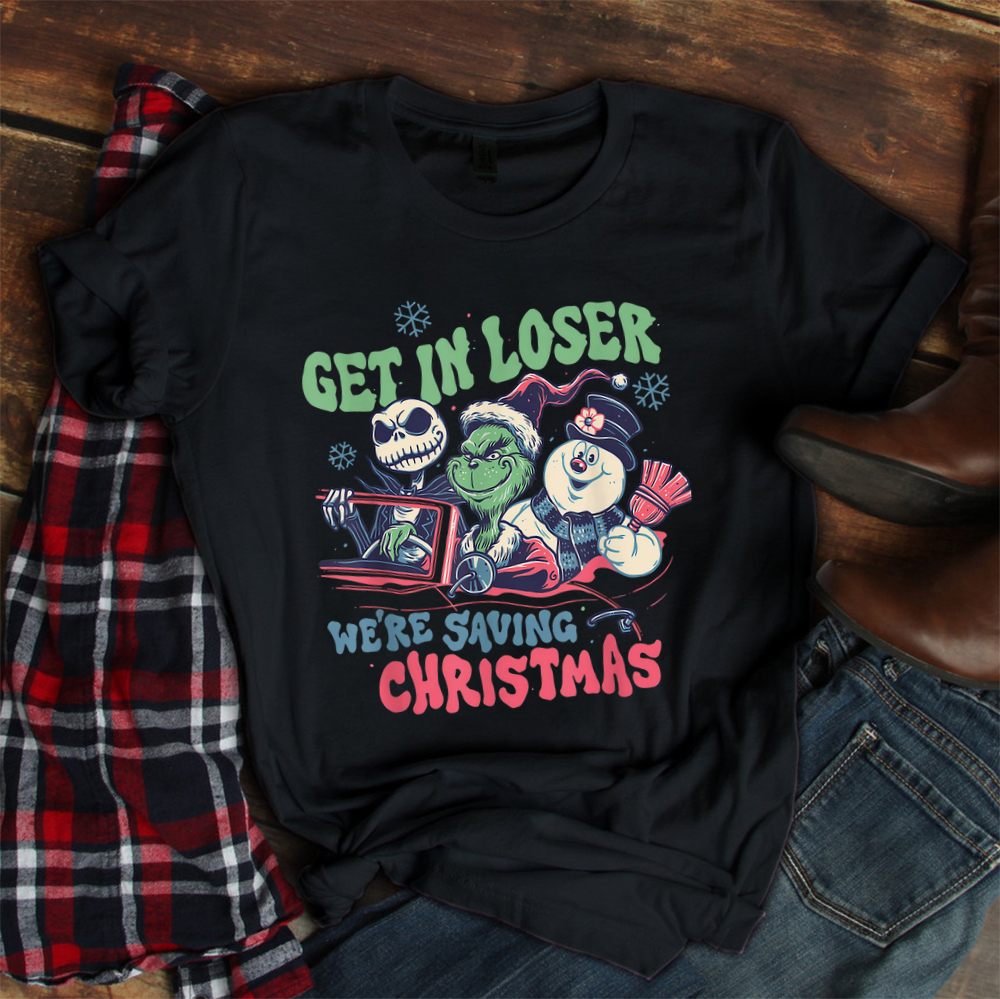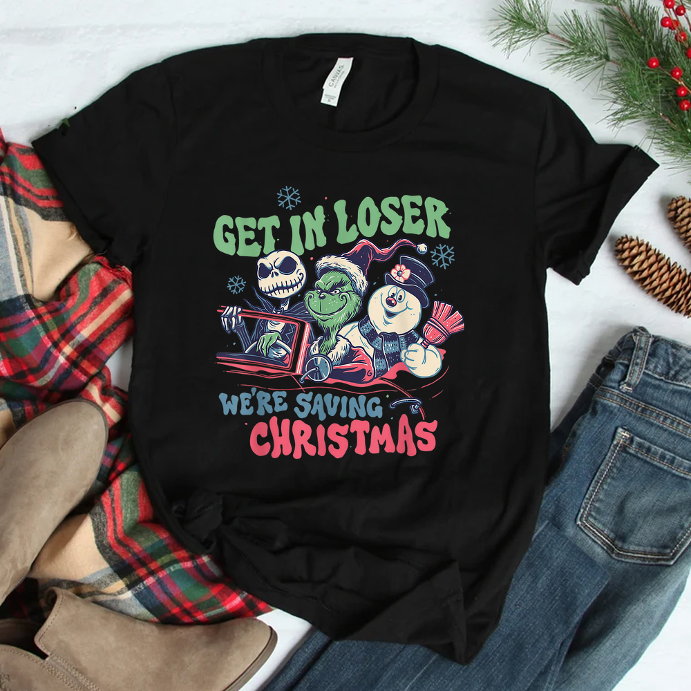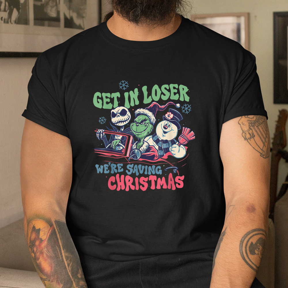 Get In Loser We’re Saving Santa Snowman Christmas Shirt