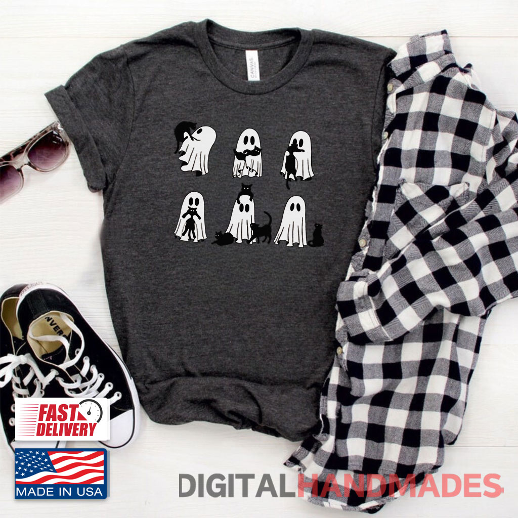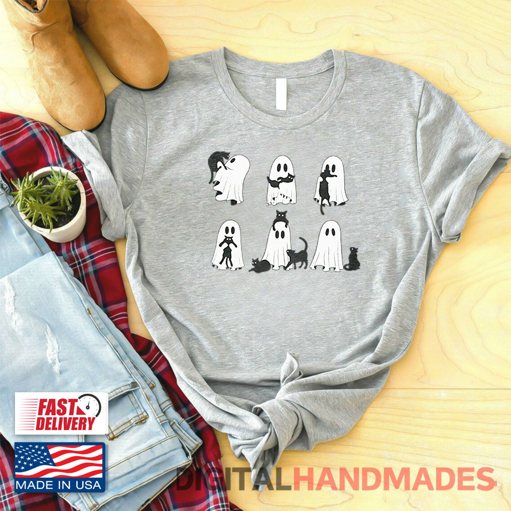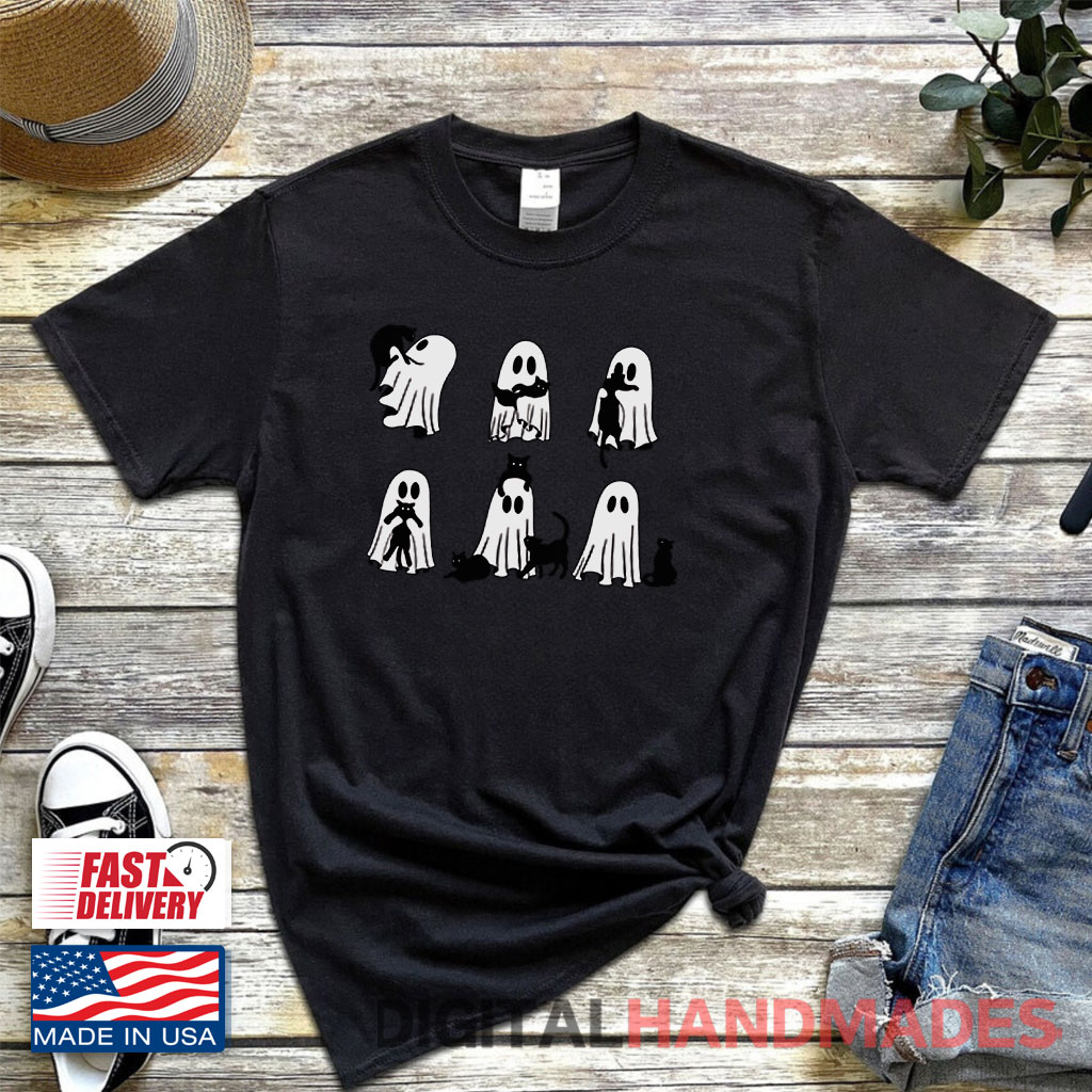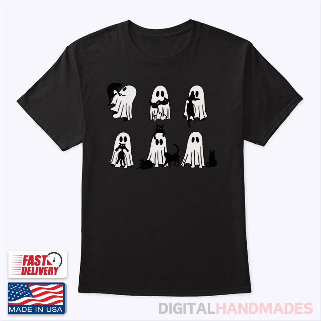Ghost Black Cat Halloween Shirt is great to express that you love everything about Halloween, including ghosts and black cats.