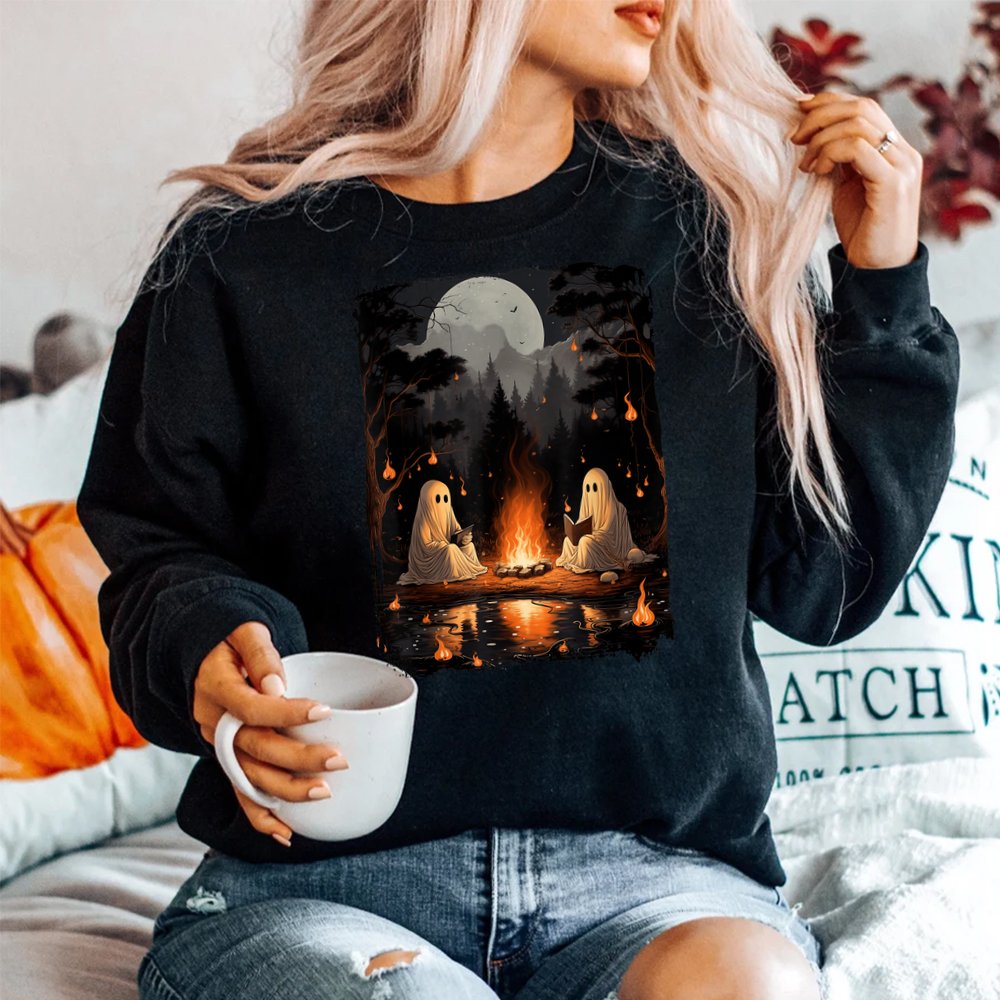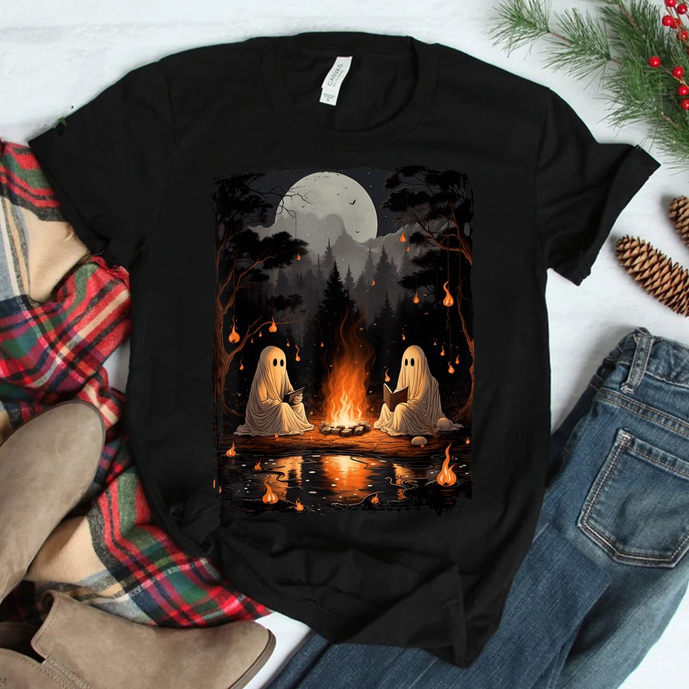 Ghost Book Reading Camping Gothic Halloween Shirt, hoodie, sweatshirt, long sleeve and ladies T-shirt