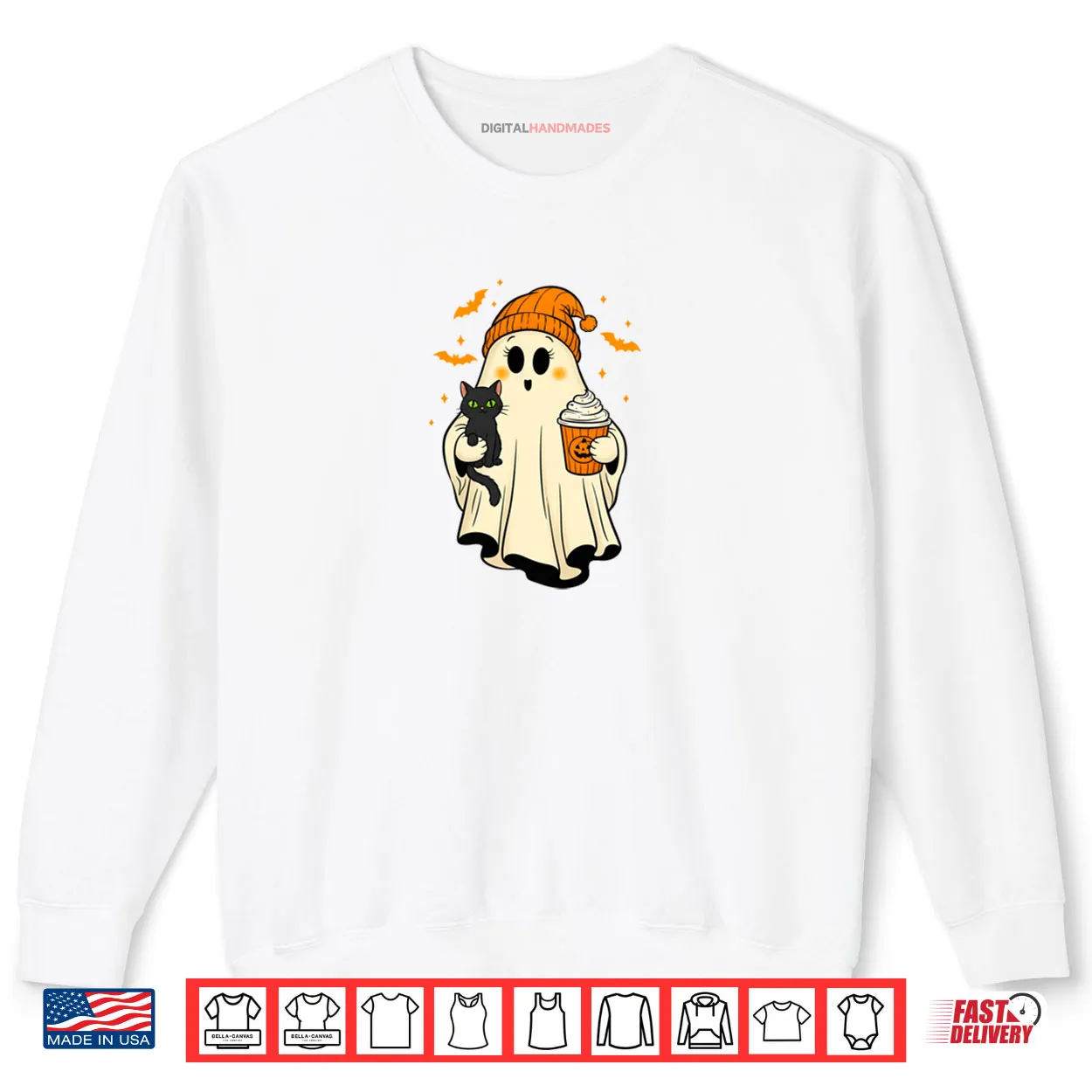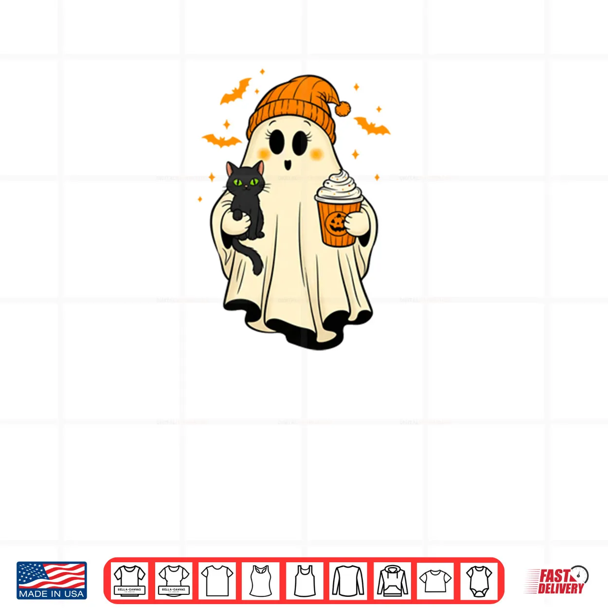 Ghost Holding Black Cat Pumpkin Spice Vintage Halloween Shirt