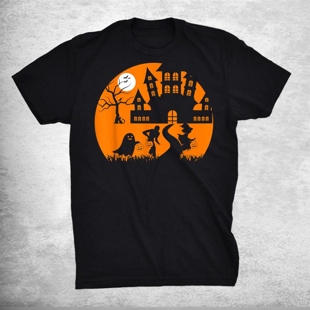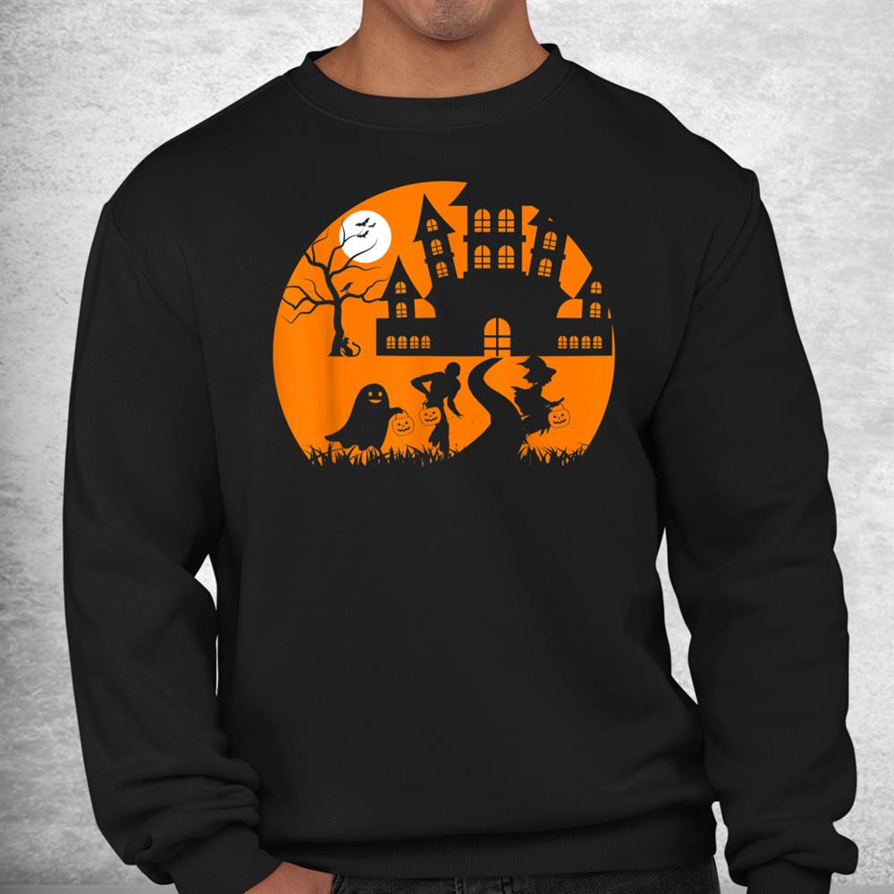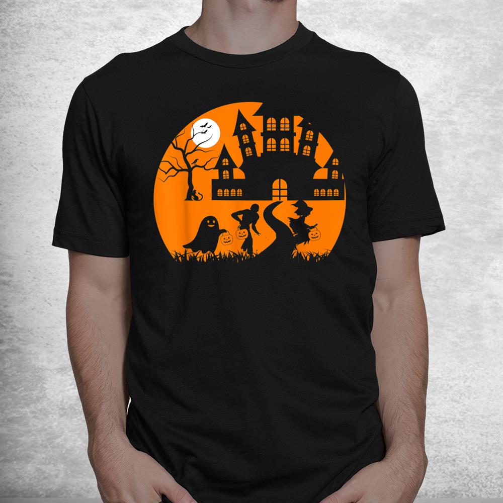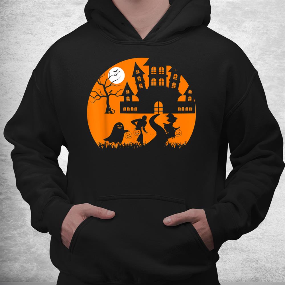Ghost Skeleton And Witch In Front Of A Castle Tree Halloween Shirt, hoodie, sweatshirt, long sleeve and ladies T-shirt