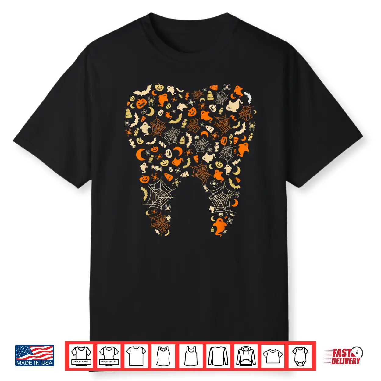 Ghosts & Pumpkins Spider Webs Tooth Dental Squad Halloween Shirt