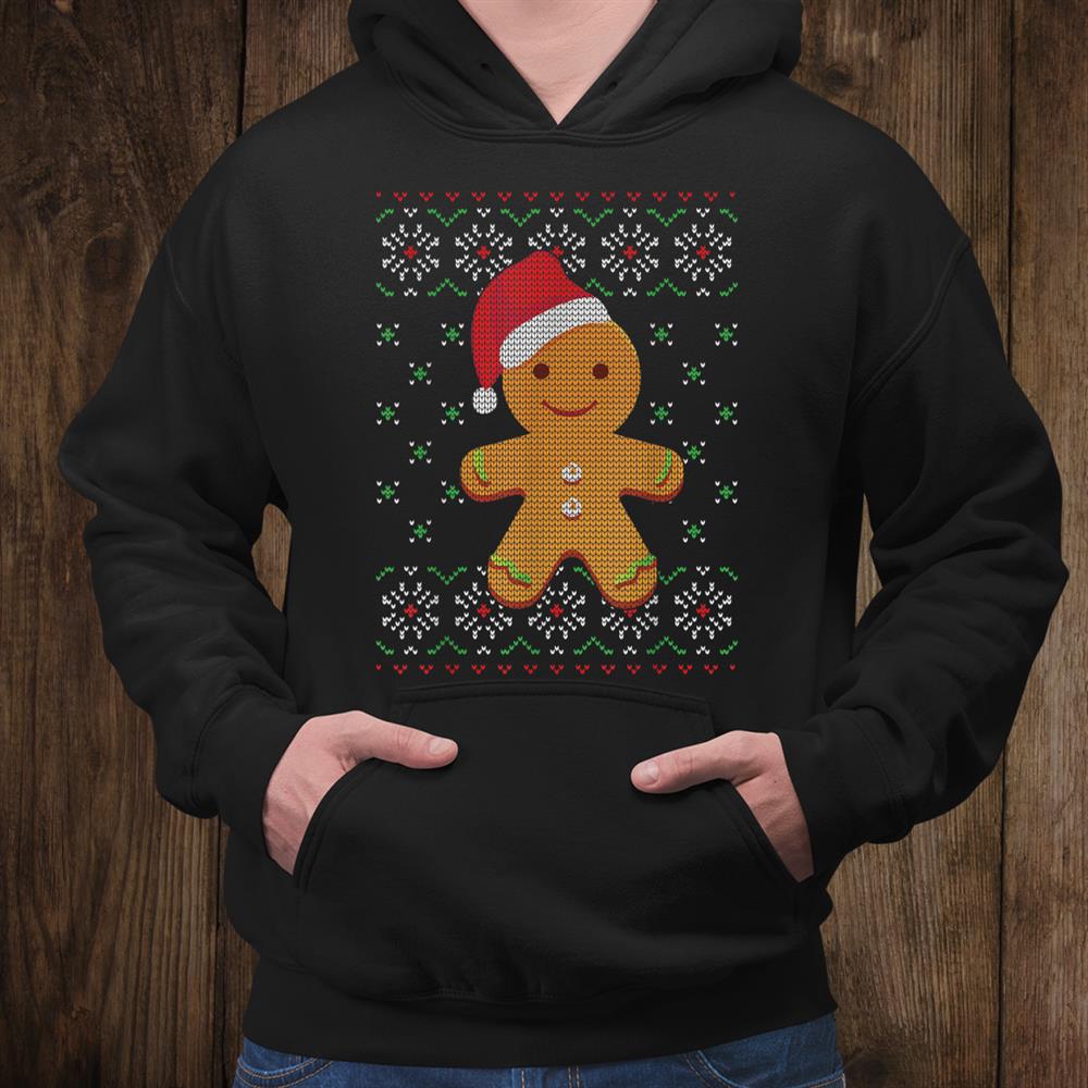 Gingerbread Man Santa Hat Holiday Funny Ugly Christmas Shirt, hoodie, sweatshirt, long sleeve and ladies T-shirt