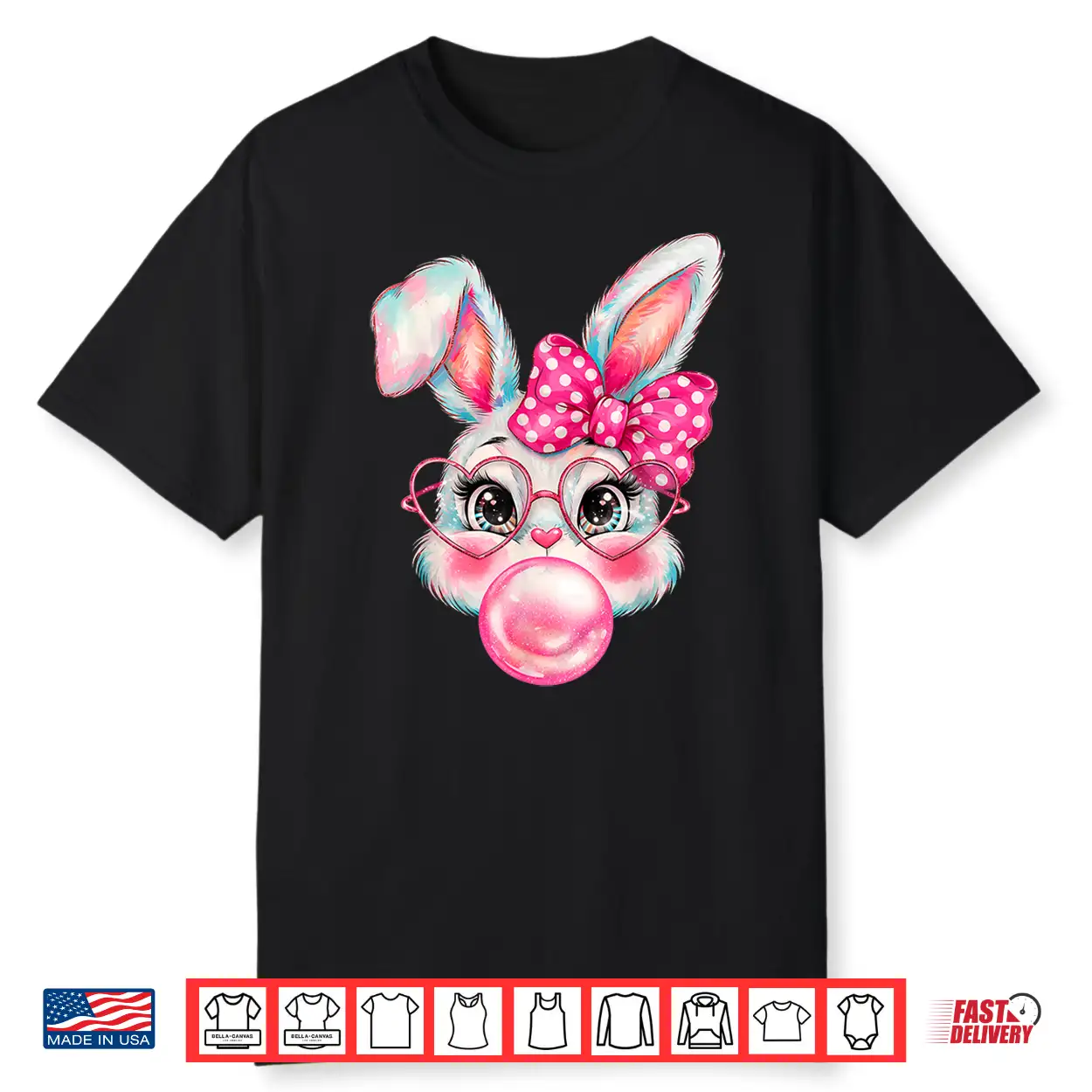 Girls Easter Cute Bunny Face Coquette Bow Kids Shirt