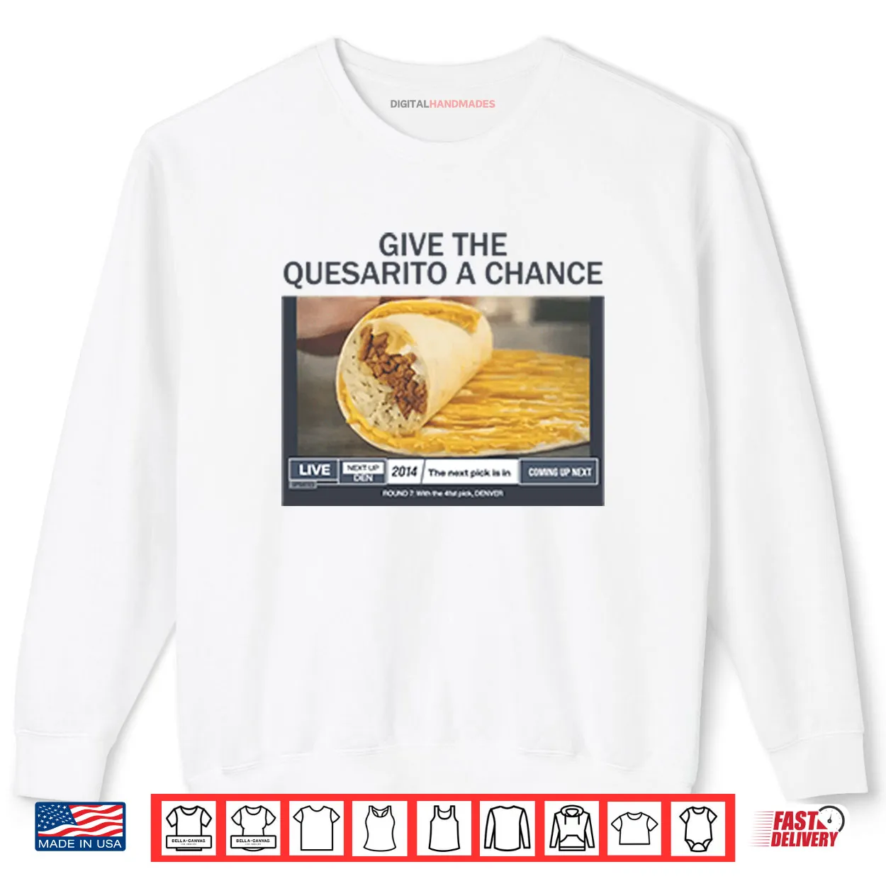 quesarito, give a chance, food humor, fast food, taco bell, craving, hungry, funny quote, relatable, shirt