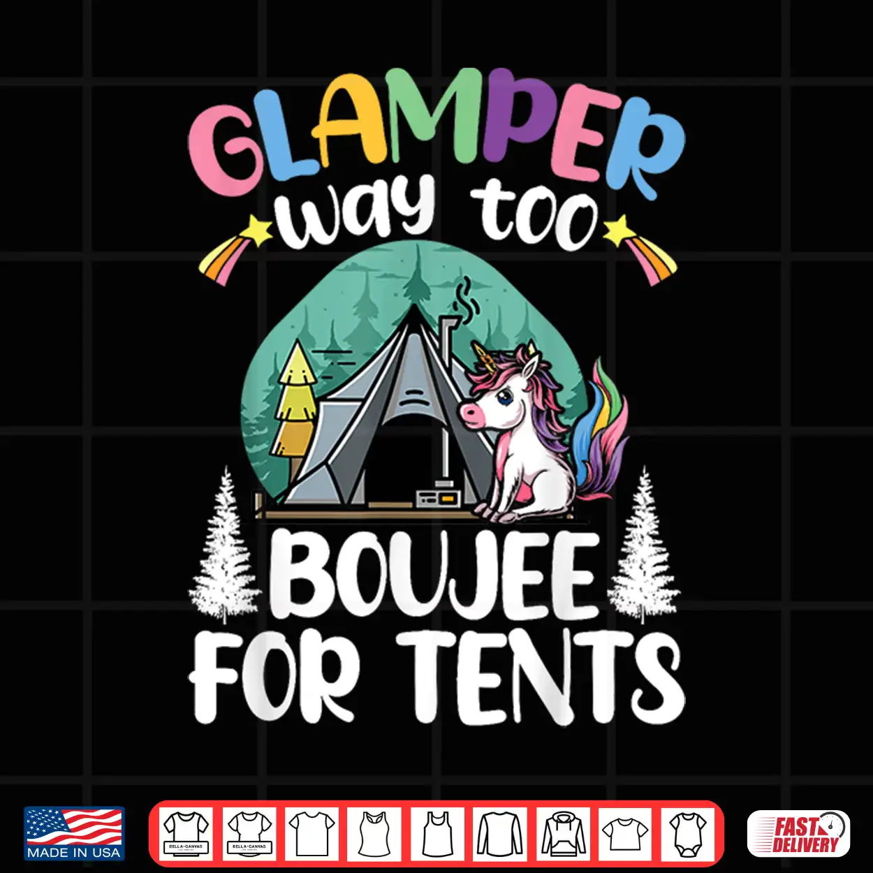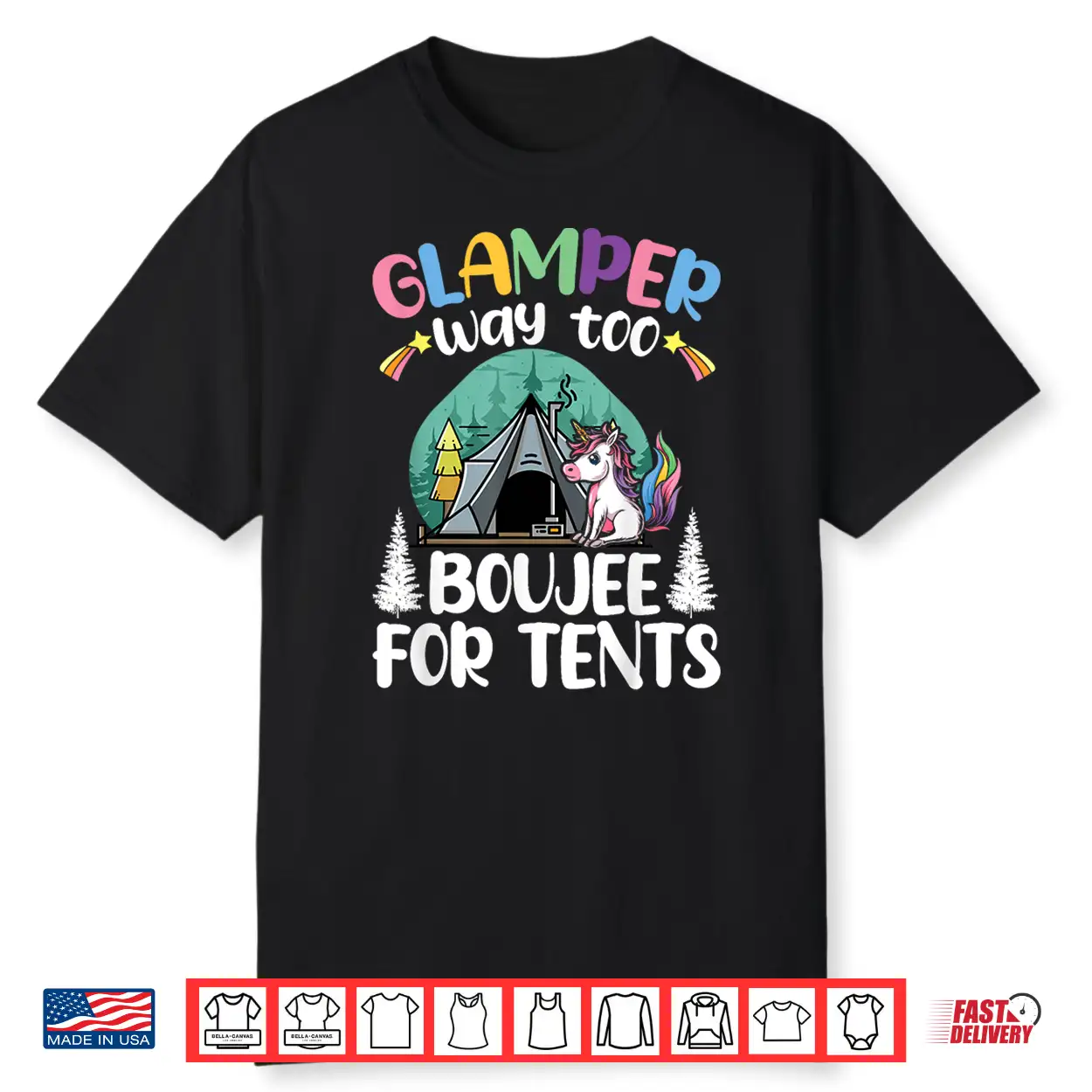 Glamper Way Too Boujee For Tents Glamping Tent Camping Shirt