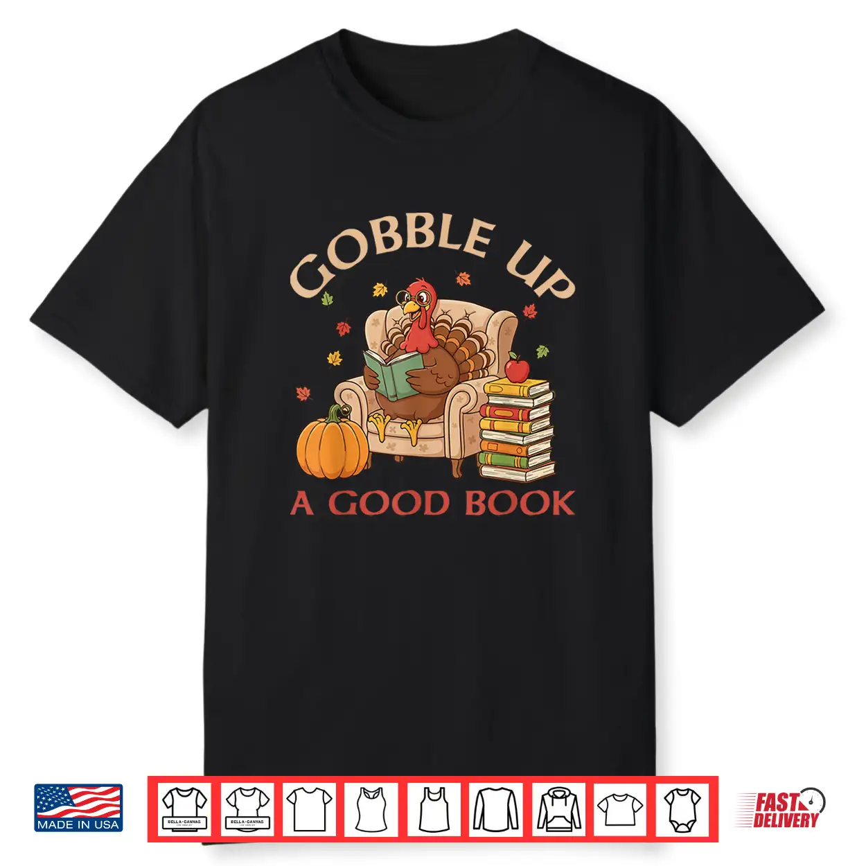 Gobble Up A Good Book Turkey Reading Book Thanksgiving Shirt