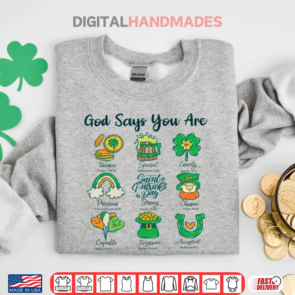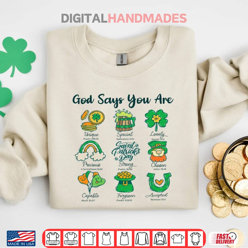 God Says You Are St. Patrick’s Day sweatshirt, Bible verse St. Patrick’s Day shirt, Christian St. Patrick’s Day shirt, Patrick’s Green sweatshirt, religious St. Patrick’s Day shirt, faith-based St. Patrick’s Day shirt, inspirational St. Patrick’s Day shirt, Christian gift, St. Patrick’s Day gift, church apparel, Irish Christian shirt.