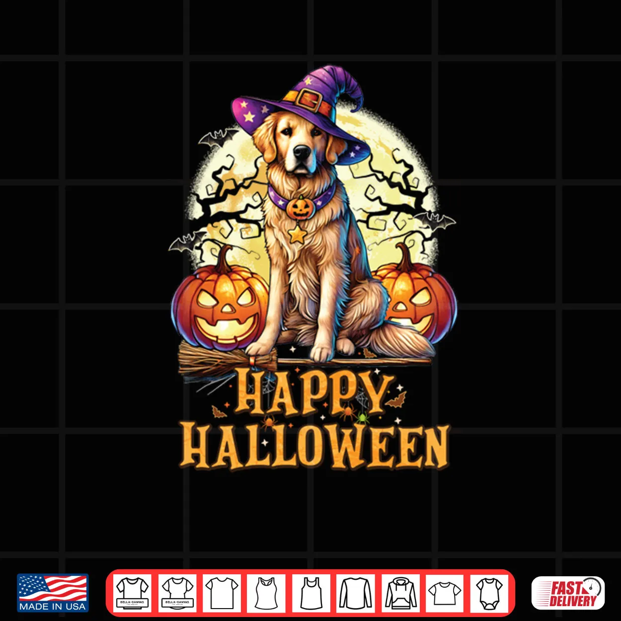 Golden Retriever Dog Lover Witch Hat Scary Funny Halloween Shirt