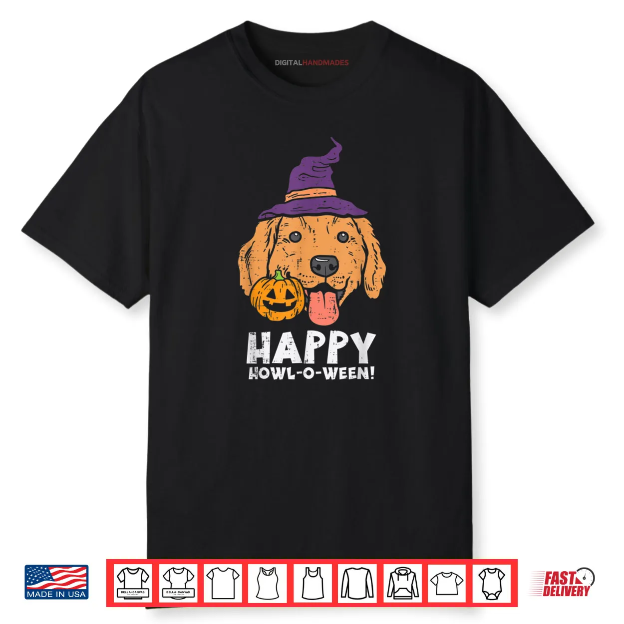 Golden Retriever Witch Happy Howl O Ween Funny Halloween Dog Shirt
