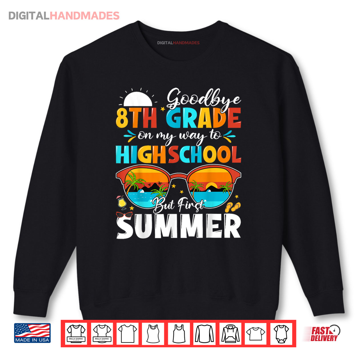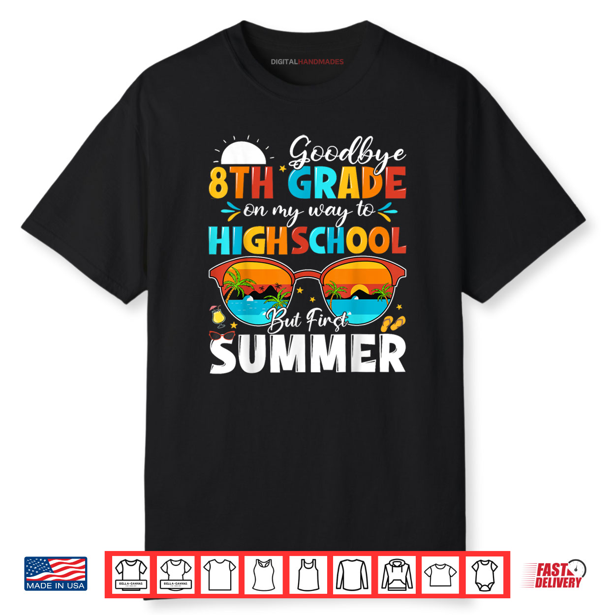 Goodbye 8th Grade Graduation To Highschool Hello Summer Shirt, Goodbye 8th Grade Hello High School Shirt, High School Here I Come Summer Tee Shirt, Graduation To 9th Grade Celebration Shirt, Hello Summer Vacation Fun Style Shirt, Middle School Graduation Gift Proud Shirt, Last Day Of 8th Grade Party Fan Shirt, Summer Break For Teens Lady Chic Shirt, Moving On To High School Adventure Shirt, End Of Middle School Year Sweet Shirt