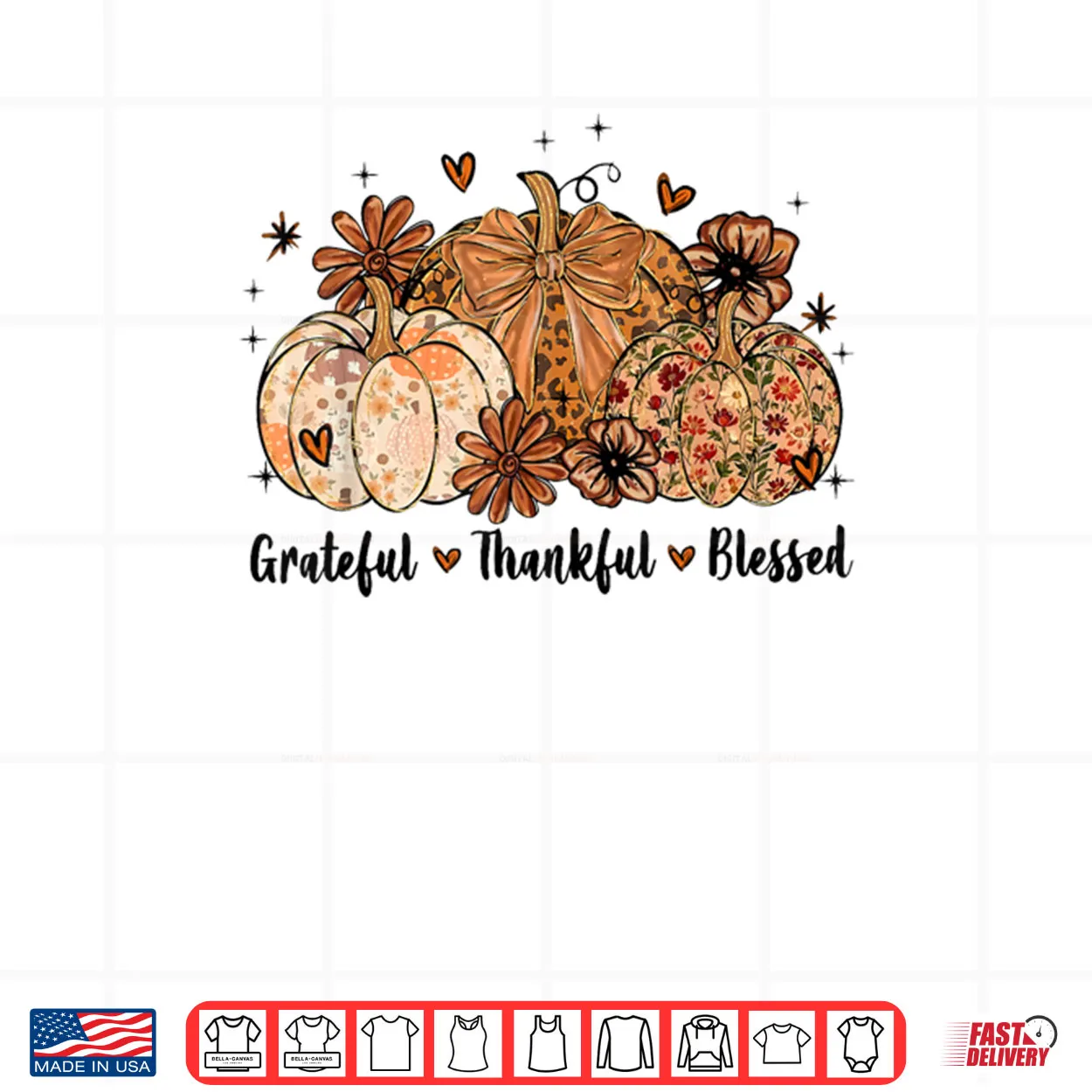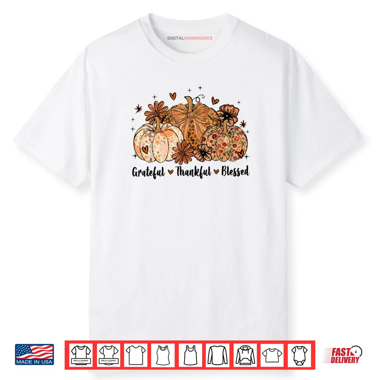 Grateful Thankful Blessed Pumpkin Thanksgiving Autumn Fall Shirt, Grateful Thankful Blessed, Pumpkin, Thanksgiving, Autumn, Fall, Inspirational, Holiday