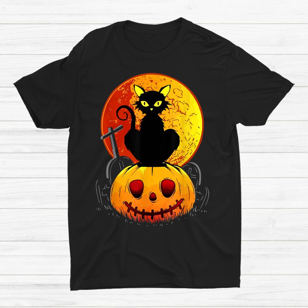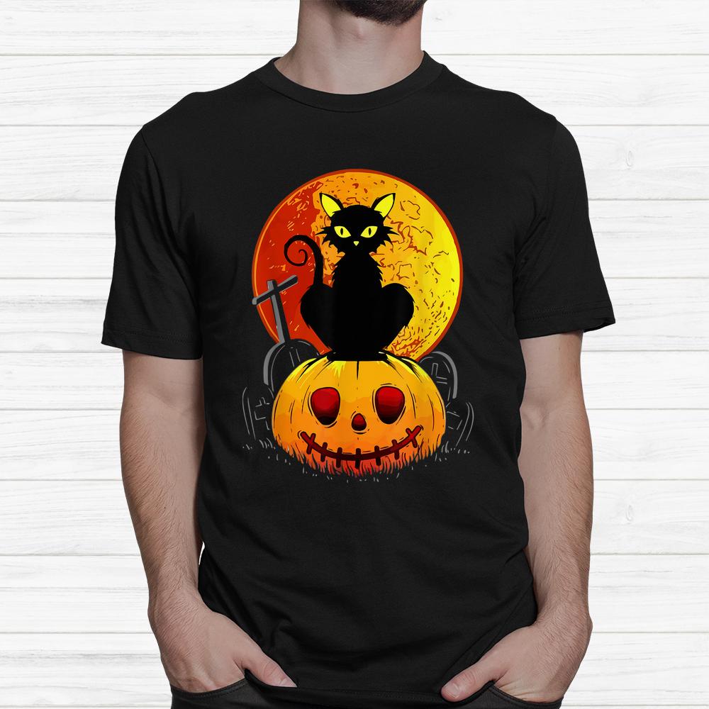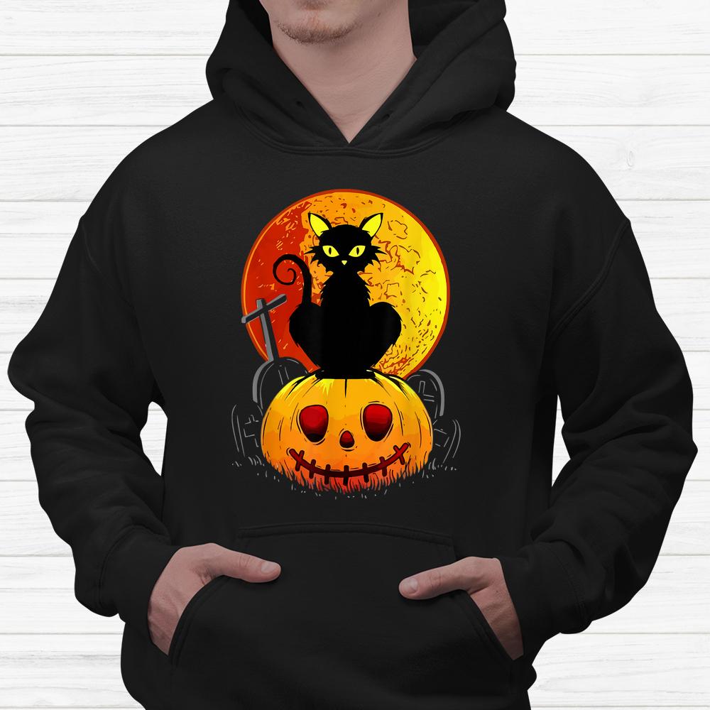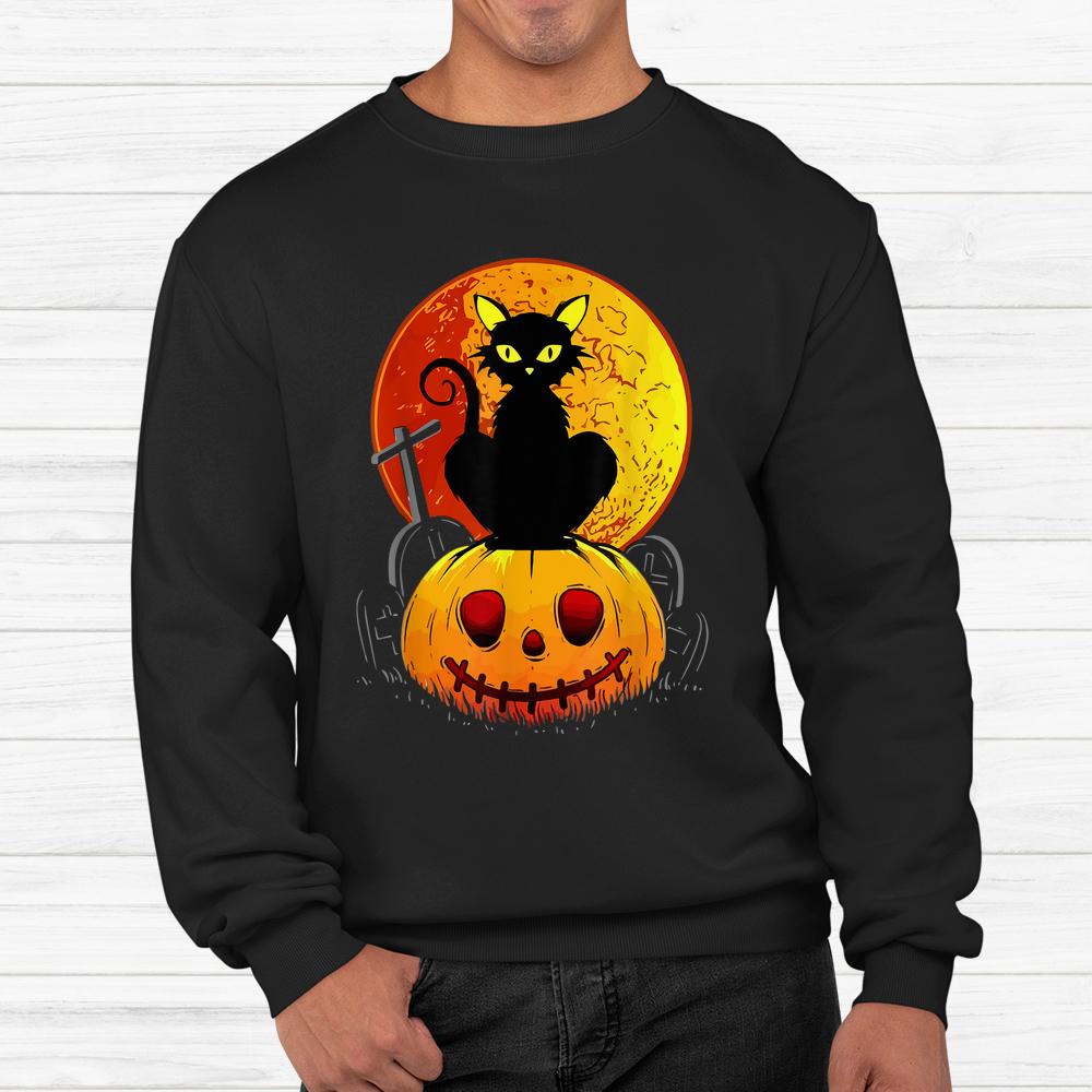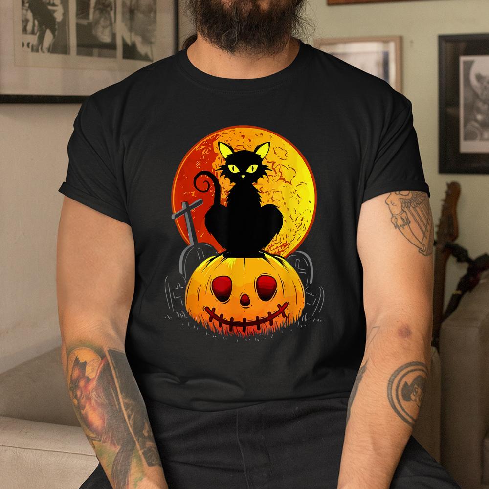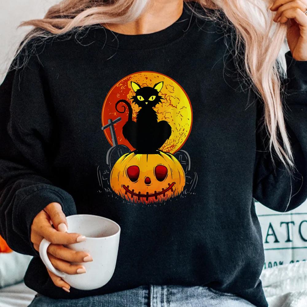 Graveyard Spooky Black Cat Full Moon Pumpkin Halloween Shirt, hoodie, sweatshirt, long sleeve and ladies T-shirt