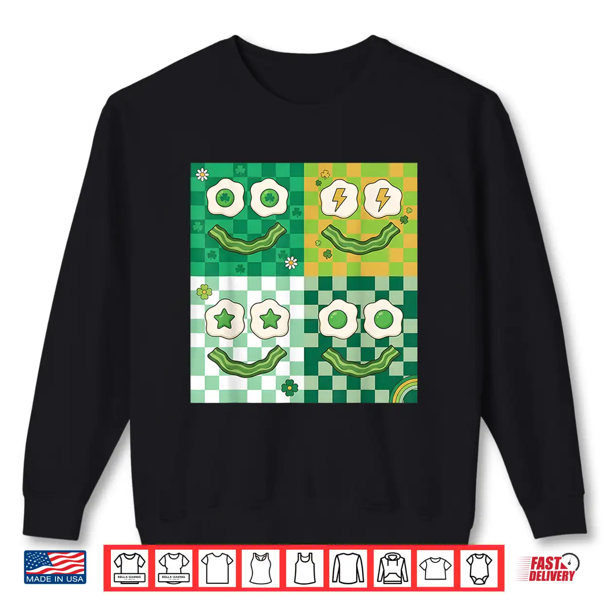 Green Smile Face Eggs And Bacon Ham Breakfast Graphic Shirt